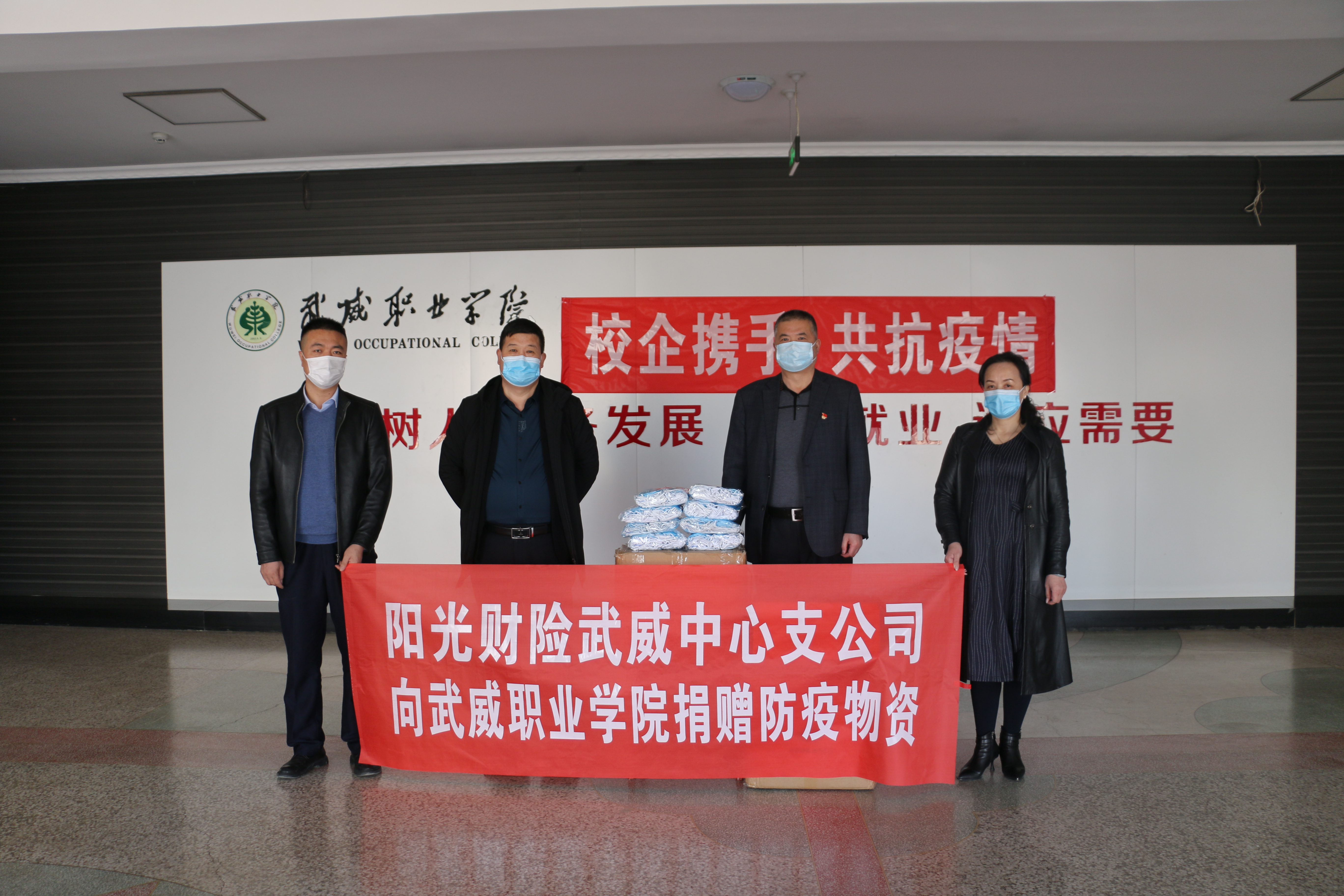 陽光財(cái)產(chǎn)保險(xiǎn)股份有限公司武威中心支公司向?qū)W院捐贈(zèng)新冠肺炎疫情物資,捐贈(zèng)一次性醫(yī)用口罩5000個(gè)。