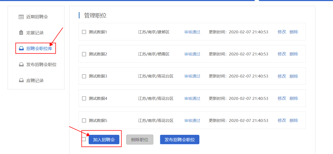 4.個人用戶在個人會員中心-網(wǎng)絡招聘會頁面查看應聘記錄。