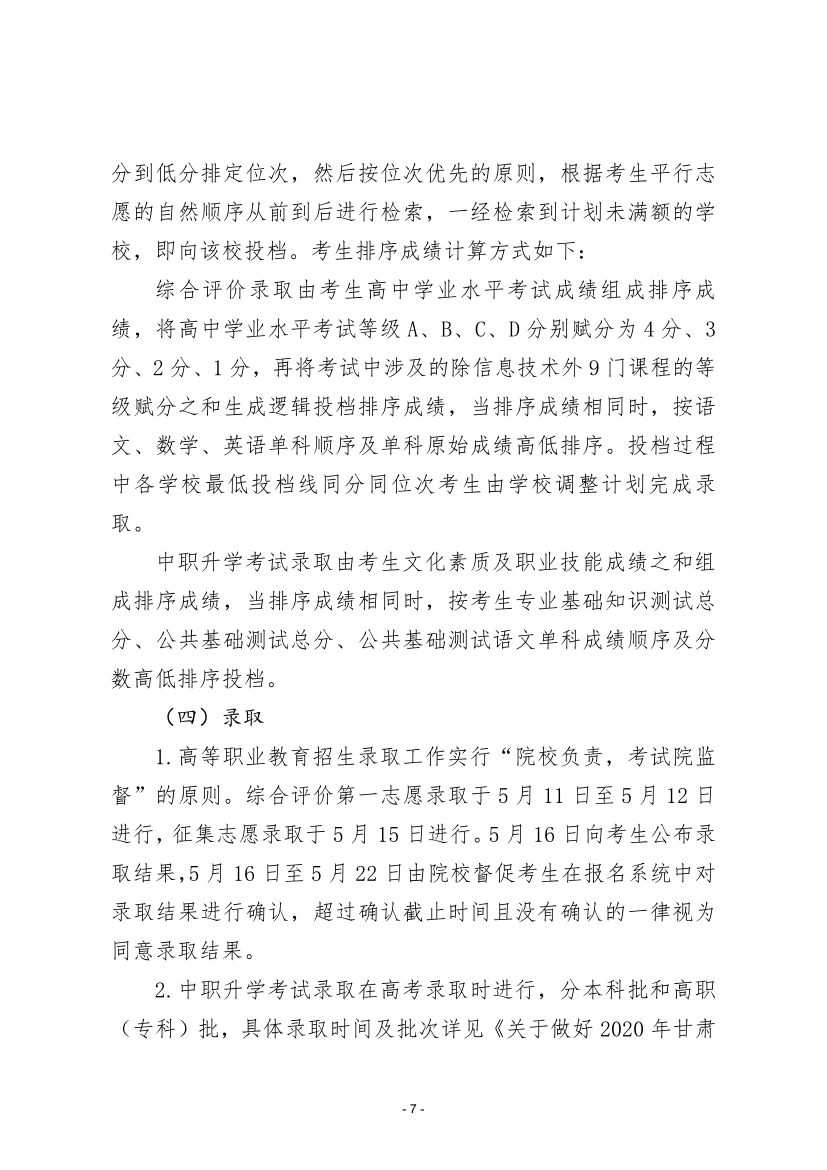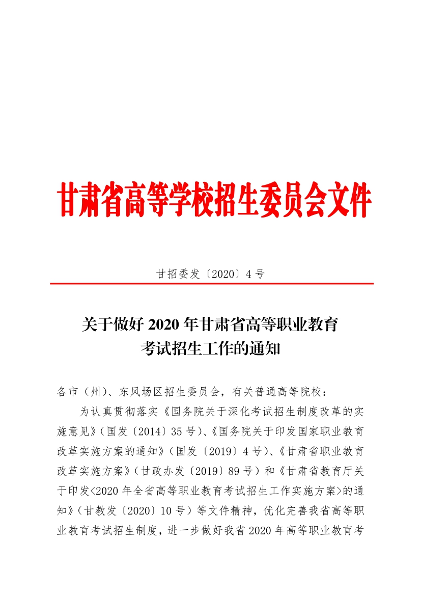 關(guān)于做好2020年甘肅省高等職業(yè)教育考試招生工作的通知