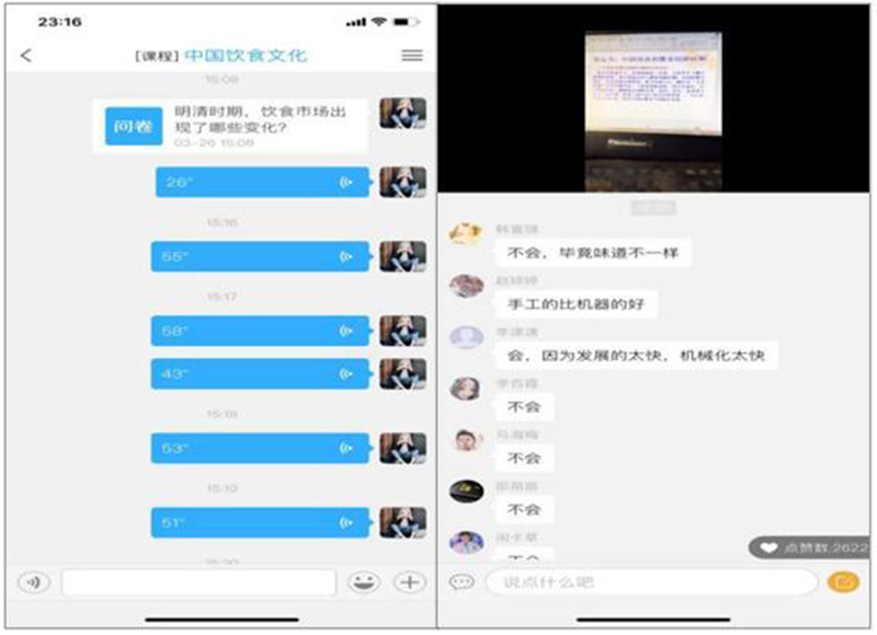 經(jīng)濟管理系張海燕老師,充分利用網(wǎng)絡資源上好線上課程,巧妙引導學生提高教學效果。利用“自建+在線資源優(yōu)選”的方式豐富《隴原民俗文化》《中國飲食文化》兩門課程的線上教學資源,并采用錄屏方式將網(wǎng)絡資源進行加工,為自建課程添加教學元素。在課堂講授過程中,根據(jù)教學內(nèi)容與個人喜好靈活選擇直播、語音教學、自學+答疑等授課方式。為達到良好教學的效果,課中通過圖片、視頻、音頻、形式多樣的教學活動、趣味性作業(yè)等激發(fā)學生自主學習的興趣,活躍課堂氣氛,并掌握學生學習動態(tài)。