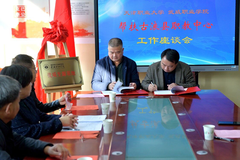 對接會上,趙明為古浪職教中心頒授“優(yōu)質(zhì)生源基地”牌匾,簡要介紹了學院近年來取得的重要辦學成果。他表示,學院今年顯著加強了同古浪職教中心的合作力度,今后還要擴大合作培養(yǎng)專業(yè),全方位深化合作關系,共同培養(yǎng)職業(yè)技能人才。他強調(diào),通過兩校的合作辦學,我們要取長補短,促進中高職貫通培養(yǎng)大力發(fā)展。會上,王守云同古浪職教中心校領導簽署了“2020年中高職貫通培養(yǎng)辦學合作協(xié)議”。
