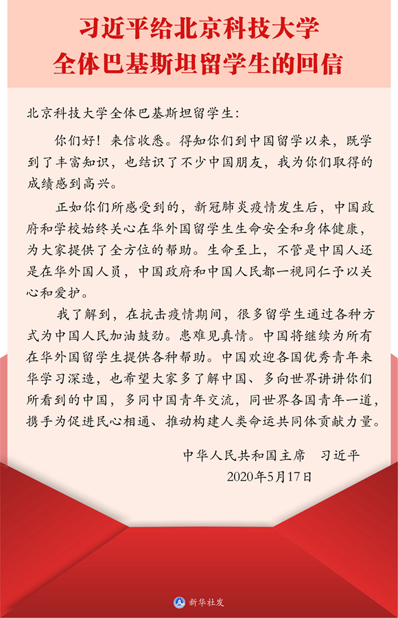 專題會后,國際合作與交流處工作人員組織留學(xué)生召開學(xué)習(xí)貫徹習(xí)近平總書記給北京科技大學(xué)全體巴基斯坦留學(xué)生回信精神專題視頻座談會。會議要求,全體留學(xué)生要認真學(xué)習(xí)回信,要深刻領(lǐng)會回信的重大意義,要深刻領(lǐng)會回信的真情實感。留學(xué)生們一致對學(xué)院在新冠肺炎疫情暴發(fā)后給予的關(guān)心表示感謝,表示學(xué)有所成后要投身“一帶一路”建設(shè)、為增進中外友誼做出貢獻。