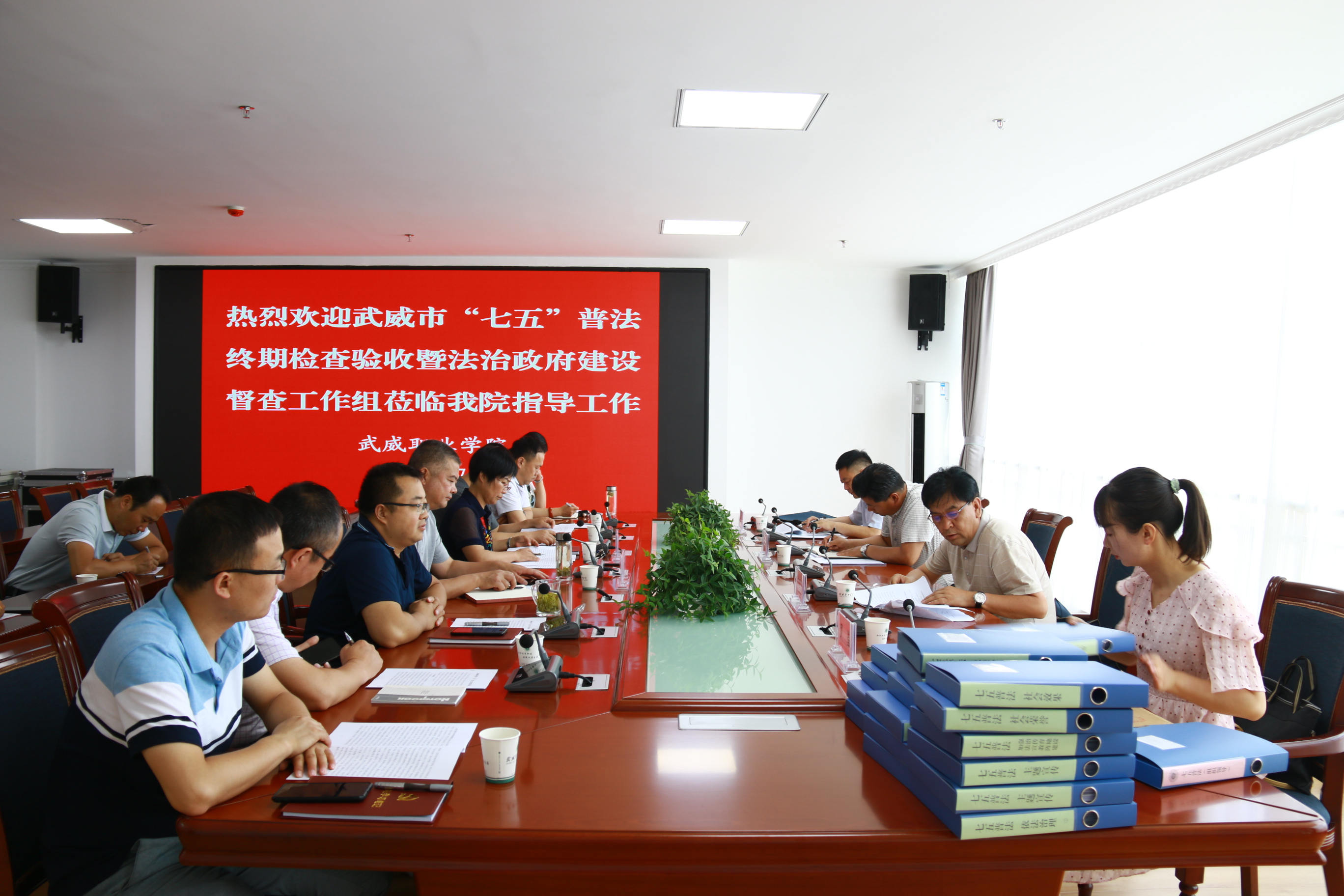 7月7日上午,武威市“七五”普法終期檢查驗收第五督察組成員、武威市委宣傳部副調(diào)研員韋國富,市司法局黨組成員、副局長傅瑞川,市公共法律服務中心主任劉文元,市司法局組織人事科科員羅瑩深入我院對“七五”普法工作開展情況和法治政府建設工作進行了終期驗收督查。學院黨委委員、副院長何毅、王守云,相關部門負責人參加檢查驗收。