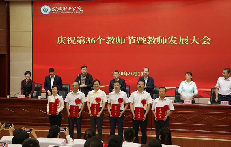 學(xué)院領(lǐng)導(dǎo)分別宣讀了《武威職業(yè)學(xué)院關(guān)于表彰獎(jiǎng)勵(lì)2020年度優(yōu)秀教師、優(yōu)秀教育工作者的決定》《關(guān)于表彰學(xué)院2020年“教書育人楷模”獲得者的決定》《關(guān)于表彰學(xué)院2020年“我最喜愛的老師”獲得者的決定》《武威職業(yè)學(xué)院關(guān)于表彰獎(jiǎng)勵(lì)語言文字推廣先進(jìn)個(gè)人的決定》和《關(guān)于評(píng)定2020年院級(jí)“教學(xué)名師”“教學(xué)能手”“教學(xué)新秀”的決定》《關(guān)于聘任2020年院級(jí)專業(yè)(學(xué)科)帶頭人的決定》《武威職業(yè)學(xué)院關(guān)于評(píng)定2020年院級(jí)骨干教師的決定》。楊存忠教授和學(xué)院領(lǐng)導(dǎo)分別為獲獎(jiǎng)?wù)哳C發(fā)榮譽(yù)證書。