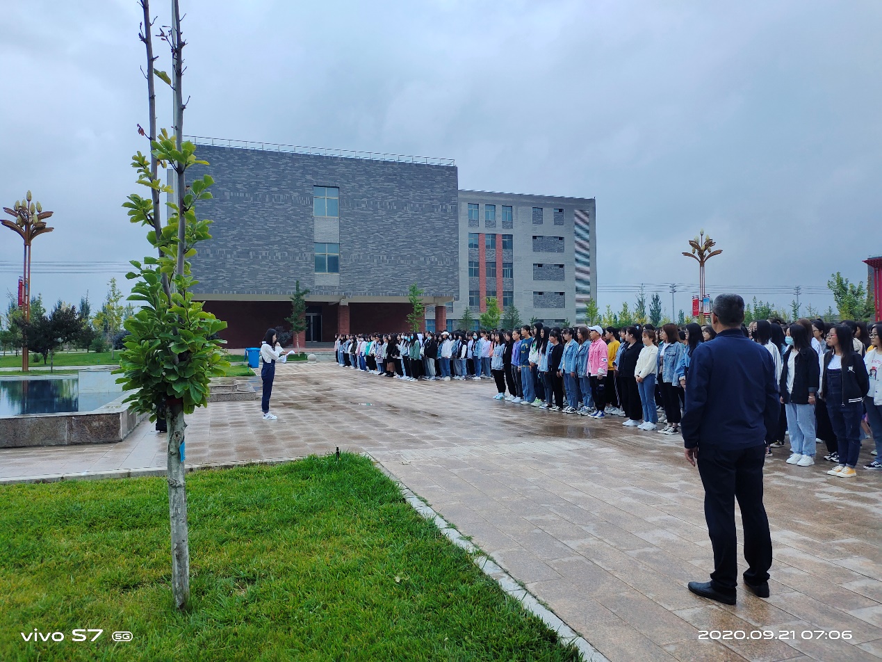 9月21日7點00分,藥學系在學院圖書館東廣場舉行升國旗儀式。系黨總支書記魏潤明、系副主任楊建美及藥學系700多名師生參加了此次升國旗儀式。