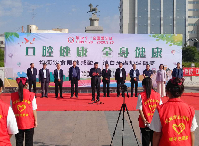 2020年9月20日是第32個(gè)“全國(guó)愛(ài)牙日”,為進(jìn)一步普及口腔健康知識(shí),結(jié)合今年全國(guó)愛(ài)牙日“口腔健康,全身健康”的主題,9月20日上午,由武威市衛(wèi)生健康委員會(huì)、武威市紅十字協(xié)會(huì)牽頭在文化廣場(chǎng)組織開(kāi)展了“9.20全國(guó)愛(ài)牙日”主題宣傳活動(dòng)。學(xué)院黨委委員、副院長(zhǎng)王守云、醫(yī)學(xué)技術(shù)與信息管理系黨總支書(shū)記黃文源及醫(yī)學(xué)技術(shù)與信息管理系100多名口腔醫(yī)學(xué)技術(shù)專(zhuān)業(yè)學(xué)生參加了志愿服務(wù)活動(dòng)。