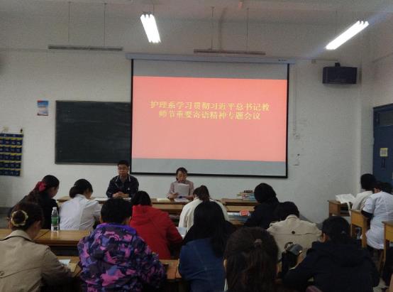會上,護(hù)理系主任韓曉萍領(lǐng)學(xué)了《習(xí)近平總書記教育重要論述講義》,重溫了總書記教師節(jié)重要寄語及精神。她指出,全體教職員工要牢記習(xí)近平總書記“不忘立德樹人初心,牢記為黨育人、為國育才使命”的責(zé)任擔(dān)當(dāng),積極探索,在教書育人的崗位上不斷作出新的重大貢獻(xiàn)。她要求,每位教職員工撰寫一篇學(xué)習(xí)心得體會,提高認(rèn)識,牢記使命,立足實際,為黨和國家培育社會主義建設(shè)者和接班人。