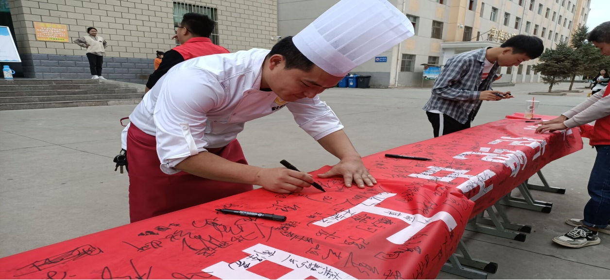 為了大力加強(qiáng)廣大師生節(jié)約糧食和光盤(pán)行動(dòng)的意識(shí),培養(yǎng)健康文明的就餐習(xí)慣。2020年9月16日武威職業(yè)學(xué)院機(jī)械制造系在學(xué)校食堂門(mén)口舉行了以“節(jié)約糧食?儉以養(yǎng)德”為主題的簽名活動(dòng)。