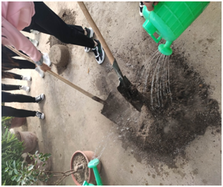 種植體驗(yàn)活動(dòng)前,為了讓學(xué)生更好地了解種植知識,張老師給同學(xué)們講解了植物種植的條件、如何根據(jù)季節(jié)選擇種植的種類,以及育苗、澆水、施肥、防蟲過程中的注意事項(xiàng)。在活動(dòng)中,學(xué)生與老師合作完成種菜任務(wù),一起探討種植經(jīng)驗(yàn)、勞動(dòng)技能。