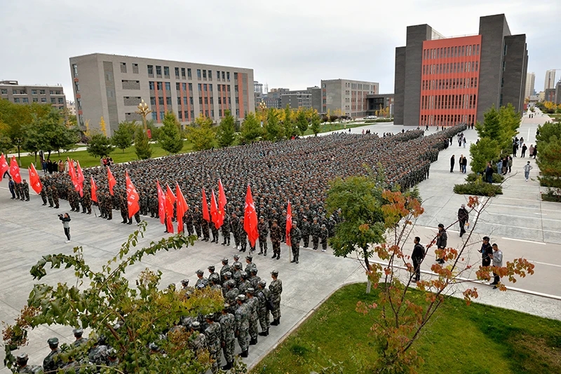 2020年10月13日早上,武威職業(yè)學(xué)院在大學(xué)生活動(dòng)中前廣場舉行了2020級(jí)新生軍訓(xùn)動(dòng)員大會(huì)。學(xué)院黨委副書記翟存祥向軍訓(xùn)團(tuán)授旗,并宣布新生軍訓(xùn)開始;31666部隊(duì)政治工作部副主任杜太申作動(dòng)員講話,院領(lǐng)導(dǎo)王永緒、田迎春、何毅、陳曉煜、張開禮出席大會(huì);學(xué)院各教學(xué)院系負(fù)責(zé)人、輔導(dǎo)員、班主任及?2020級(jí)4339名學(xué)生參加了大會(huì)。大會(huì)由黨委委員、副院長王守云主持。?