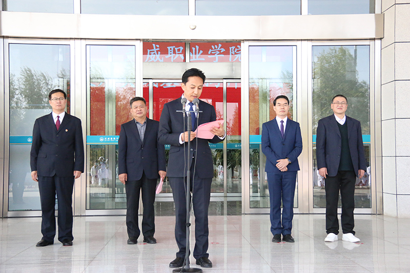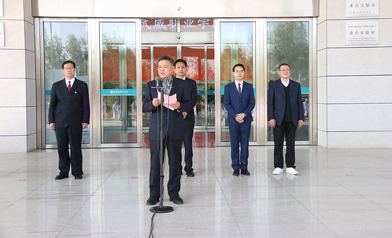 揭牌儀式上,趙明介紹學(xué)院教育教學(xué)改革發(fā)展所取得的成效,強調(diào)職業(yè)教育和普通教育是兩種不同的教育類型,具有同等重要地位,全面落實《國家職業(yè)教育改革實施方案》和“技能甘肅”部署要求,推動學(xué)院“雙高”建設(shè),爭創(chuàng)高職應(yīng)用型本科院校,離不開高水平的合作醫(yī)院,離不開高水平的師資隊伍。教師實踐基地的揭牌成立,將會進(jìn)一步加強雙方的合作交流,實現(xiàn)資源共享、優(yōu)勢互補、共同發(fā)展,我們要積極探索和創(chuàng)新基地育人方式,使之成為“雙師型”教師培養(yǎng)的搖籃。