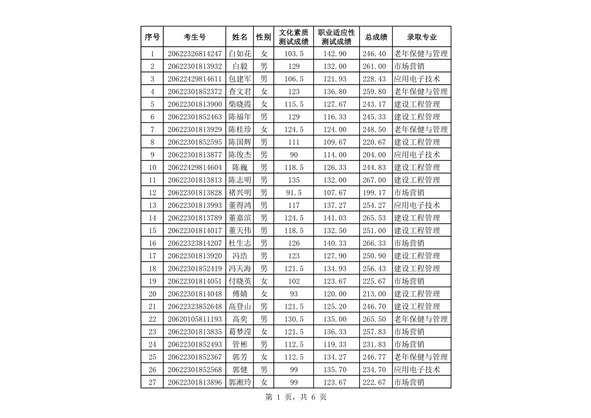 武威職業(yè)學(xué)院2020年擴招錄取新生名單