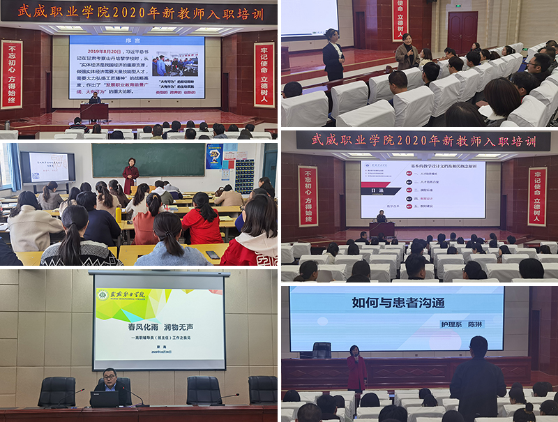 集中培訓(xùn)分為名師講堂、職業(yè)解碼、教學(xué)示范課和職業(yè)拓展四個(gè)模塊,分別邀請(qǐng)了學(xué)院黨委副書記、思政名師工作室主持人翟存祥、能源工程系負(fù)責(zé)人胡建宏、創(chuàng)新創(chuàng)業(yè)中心負(fù)責(zé)人顏魯薪、學(xué)工處教師付成榮、護(hù)理系教師趙穎和陳琳、現(xiàn)代農(nóng)業(yè)技術(shù)系教師蔡海作了精彩而又生動(dòng)的報(bào)告。報(bào)告以《育師德、樹師風(fēng)、鑄師魂,努力打造師德高尚的新時(shí)代教師隊(duì)伍——從教師職業(yè)素養(yǎng)說起》《高校教學(xué)活動(dòng)一般原理與實(shí)踐問題》《基本的教學(xué)設(shè)計(jì)文檔》《立足崗位勇?lián)?dāng) 扎根西涼育工匠——從青椒到骨干》《提高教學(xué)效率的有效方法》《如何與患者溝通》《春風(fēng)化雨潤(rùn)物無聲——高職輔導(dǎo)員(班主任)工作之我見》為主題,使新教師對(duì)教師職業(yè)素養(yǎng)、師德師風(fēng)、教育教學(xué)改革、人才培養(yǎng)模式、創(chuàng)新創(chuàng)業(yè)、課堂教學(xué)及班主任工作有了全新的認(rèn)識(shí)。