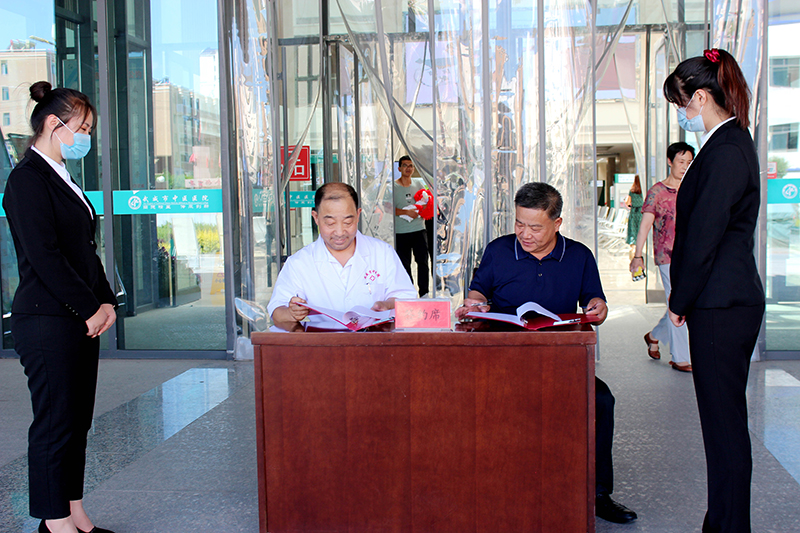 張?zhí)斓峦驹谥罗o中說:醫(yī)院能夠成為學(xué)院教師實(shí)踐基地,是武威職業(yè)學(xué)院對(duì)市中醫(yī)院各方面工作的信任和肯定,也是醫(yī)院提升綜合素質(zhì)的良好平臺(tái),更是醫(yī)院加快發(fā)展的新起點(diǎn)。醫(yī)院要以此為契機(jī),進(jìn)一步強(qiáng)化“科教興院”意識(shí),抓住機(jī)遇、乘勢(shì)而上,虛心學(xué)習(xí)、取長(zhǎng)補(bǔ)短,爭(zhēng)取以一流的管理、一流的服務(wù)、一流的技術(shù)、一流的設(shè)備、一流的環(huán)境為人民群眾的健康做出更大的貢獻(xiàn)。