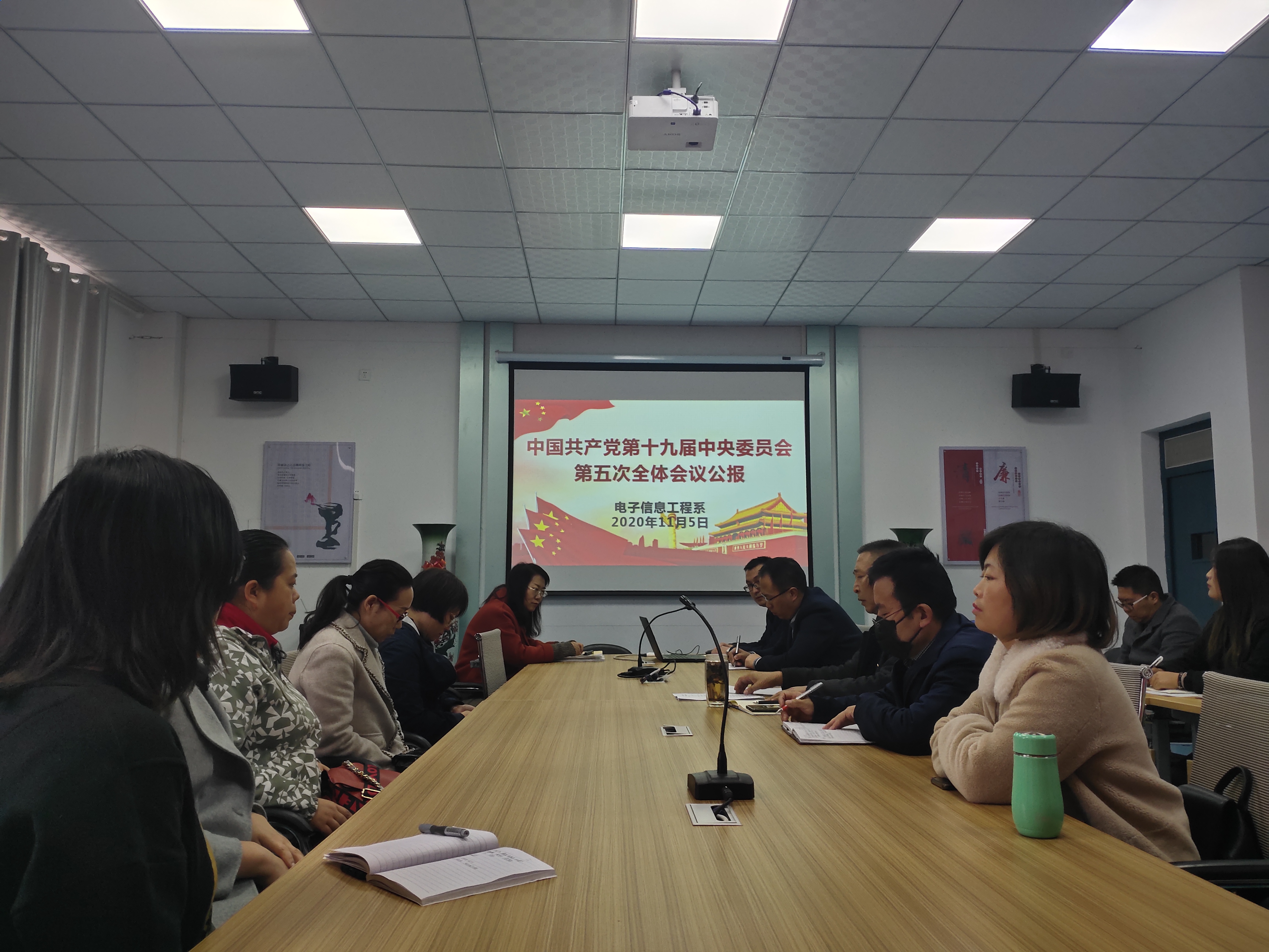 11月5日下午,電子信息工程系召開專題學習會議,深入學習領會黨的十九屆五中全會精神。會議由系黨總支書記袁青年主持,全體教師和學生黨員參加了學習。