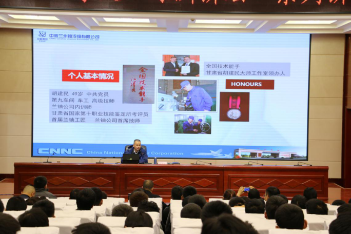 報(bào)告會上,胡建民大師首先向師生介紹了蘭鈾公司的光輝歷程、歷史貢獻(xiàn)、公司概況,然后圍繞個人成長經(jīng)歷、學(xué)習(xí)交流工作培訓(xùn)、工作室工作方向三個方面深入淺出地講述了自己的工匠之路,為同學(xué)們在專業(yè)技能、就業(yè)指導(dǎo)、職業(yè)素養(yǎng)等方面分享了自己的生活、工作經(jīng)驗(yàn),師生們獲益良多。