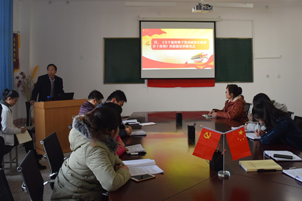 晏素珍強調(diào),系全體黨員教師務必要把將六中全會精神的學習貫徹與“兩學一做”學習教育相結合,牢牢把握正確的政治方向,切實增強自我凈化、自我完善、自我革新、自我提高能力,進一步增強“四個意識”,緊密地團結在學院黨委周圍,全面落實學院第一次黨代會確定的各項目標任務。
