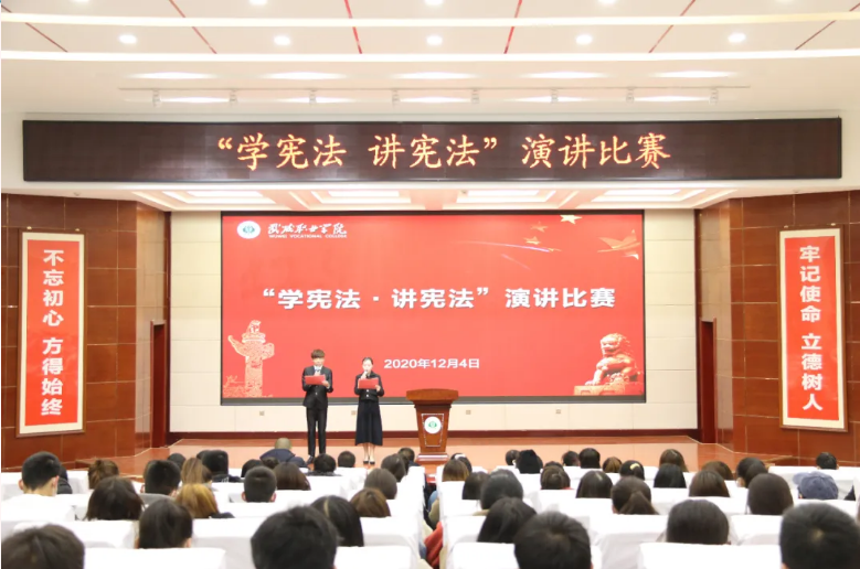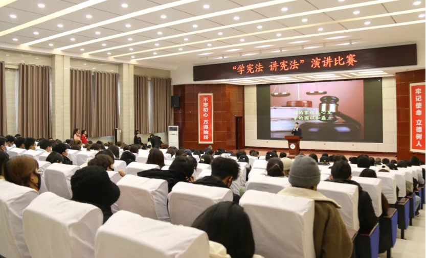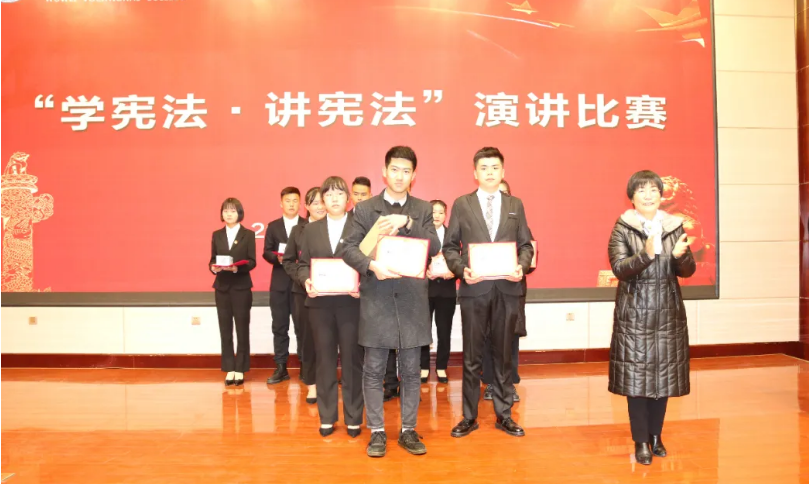 12月4日下午,學(xué)院“學(xué)憲法 講憲法”演講比賽于菁英廳舉行。學(xué)院黨委委員、副院長何毅出席活動。擔(dān)任此次比賽的評委是:宣傳統(tǒng)戰(zhàn)部部長魏全民,雙創(chuàng)中心副主任顏魯薪,學(xué)生工作處姚斌,省級普通話測試員、宣傳統(tǒng)戰(zhàn)部趙炯星,質(zhì)量管理辦公室馮文娟,院團(tuán)委王冠群。各系輔導(dǎo)員、民法典伴我行主題手抄報(bào)比賽獲獎的25名同學(xué)及師生代表共220人參加活動。