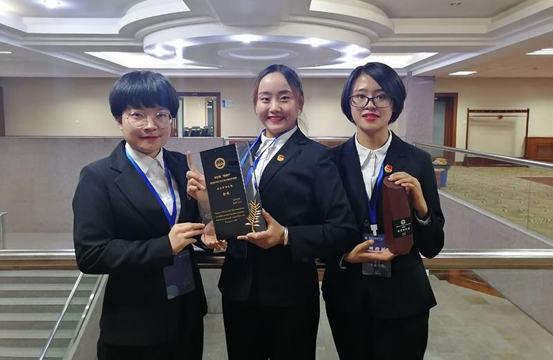 在上午進(jìn)行的初賽中,非法學(xué)組共有13個學(xué)校參加,前八名進(jìn)入決賽。我院三位選手在與兄弟學(xué)校的激烈角逐下,脫穎而出,以小組賽第二名、初賽第四名的成績輕松進(jìn)入決賽。下午的決賽中,面對更強(qiáng)大的對手,面對評委老師,三位選手始終面帶笑容、自信滿滿、密切配合,憑自己的努力、實力,發(fā)揮出她們的最好水平,個人答題毫無破綻、搶答過程頻頻得手、個人論述聲情并茂,獲得了評委的高度贊賞。經(jīng)過激烈的比拼,我院代表隊一路披荊斬棘,過關(guān)斬將,最終獲得非法學(xué)組金獎(第一名),學(xué)院獲優(yōu)秀組織獎,羅茜獲得個人優(yōu)秀選手獎。