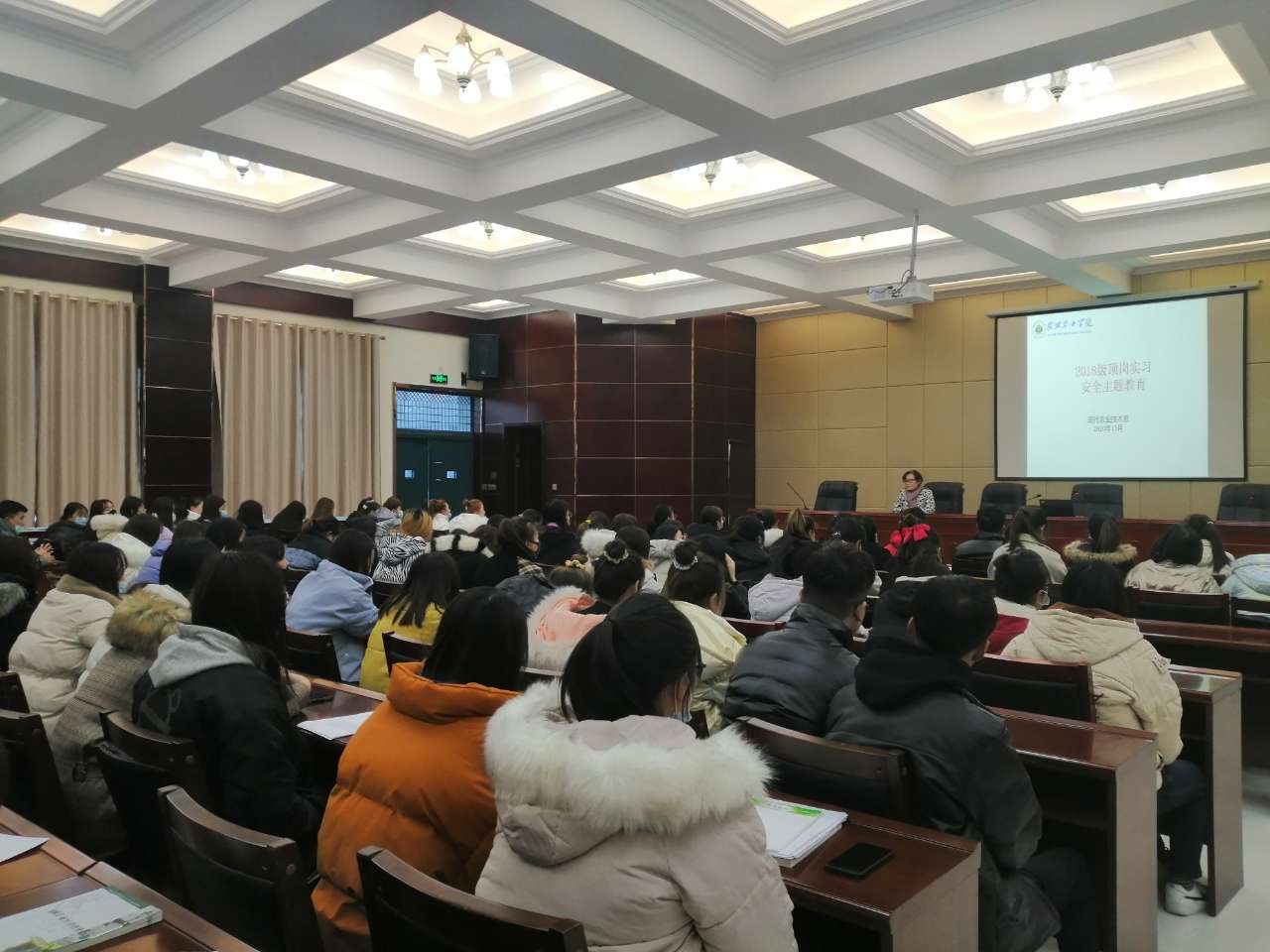 為確保2018級各專業(yè)學生頂崗實習工作順利進行,12月14日現(xiàn)代農(nóng)業(yè)技術(shù)系在行樹樓北廳召開學生頂崗實習安全主題教育大會,全系180多名實習學生參加了此次會議。