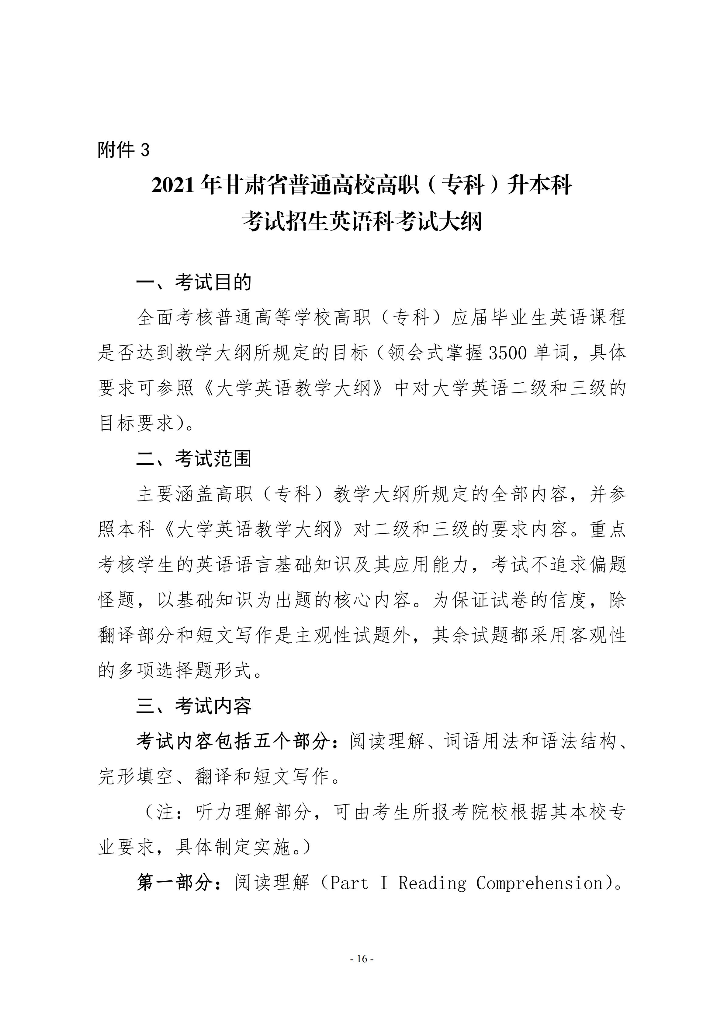 2021年甘肅省普通高校高職(專(zhuān)科)升本科考試招生工作方案