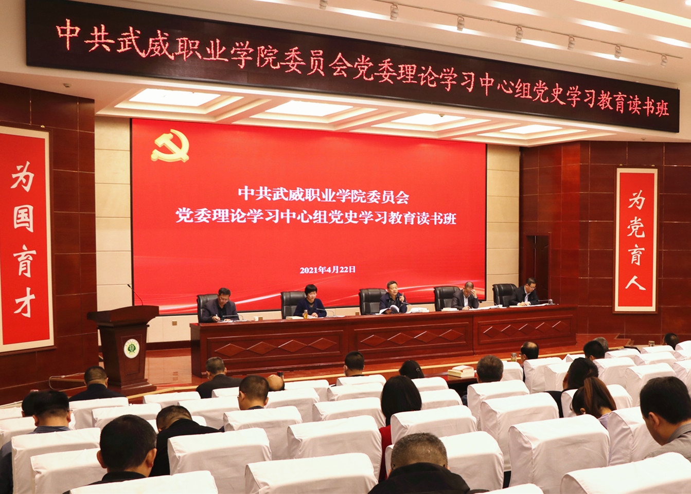 專題輔導(dǎo),在重溫歷史中凝聚奮進(jìn)力量。讀書班于4月22日下午邀請中共武威市委黨校講師、市黨史學(xué)習(xí)教育宣講團(tuán)成員魏樂儀以《中國共產(chǎn)黨應(yīng)對風(fēng)險挑戰(zhàn)的經(jīng)驗(yàn)啟示》為題,從強(qiáng)國征程、黨史開篇,百年大黨的深沉歷史自覺;危中尋機(jī)、困中破局,黨應(yīng)對風(fēng)險挑戰(zhàn)的歷史進(jìn)程;以史為鏡,以史明志,推進(jìn)偉大歷史偉業(yè)三個方面給參加讀書班的黨員干部和師生作了一場精彩的專題輔導(dǎo)。黨員干部和師生紛紛表示,中國共產(chǎn)黨的一百年,是歷經(jīng)艱難險阻、克服各種困難、最終走向輝煌的歷史,是一部不懈奮斗史、理論探索史、自身建設(shè)史,蘊(yùn)含十分豐富的教育資源。我們要從中汲取奮斗力量,克服影響制約學(xué)院發(fā)展的困難問題,推進(jìn)“雙高計劃”院校建設(shè),以更加優(yōu)異成績迎接中國共產(chǎn)黨成立100周年。