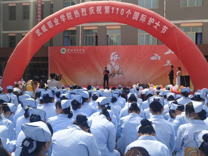 在第110個(gè)國際護(hù)士節(jié)到來之際,為慶祝中國共產(chǎn)黨百年華誕,繼承和弘揚(yáng)南丁格爾救死扶傷的人道主義精神和為護(hù)理事業(yè)無私奉獻(xiàn)的高尚品質(zhì),強(qiáng)化我院護(hù)生職業(yè)理念和使命擔(dān)當(dāng),推動我院護(hù)理事業(yè)不斷向前發(fā)展,助力學(xué)院“雙高”建設(shè),5月11日下午,學(xué)院在明遠(yuǎn)樓北廣場舉辦5.12國際護(hù)士節(jié)慶?;顒?。學(xué)院副院長王永緒、張開禮、武威市區(qū)部分實(shí)習(xí)醫(yī)院護(hù)理部、科教科負(fù)責(zé)人及學(xué)院相關(guān)處室領(lǐng)導(dǎo)出席本次活動,護(hù)理系師生1600余人參加了本次活動。