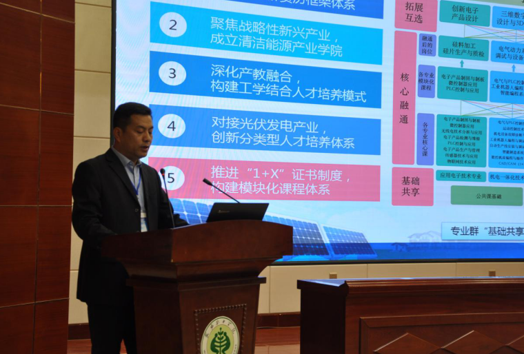 杭州瑞亞公司院校合作事業(yè)部總經(jīng)理桑寧如做了光伏電站運維1+X證書制度政策解讀,武威職業(yè)學院省級雙高計劃光伏工程技術高水平專業(yè)群負責人黃述杰匯報了專業(yè)群建設情況。