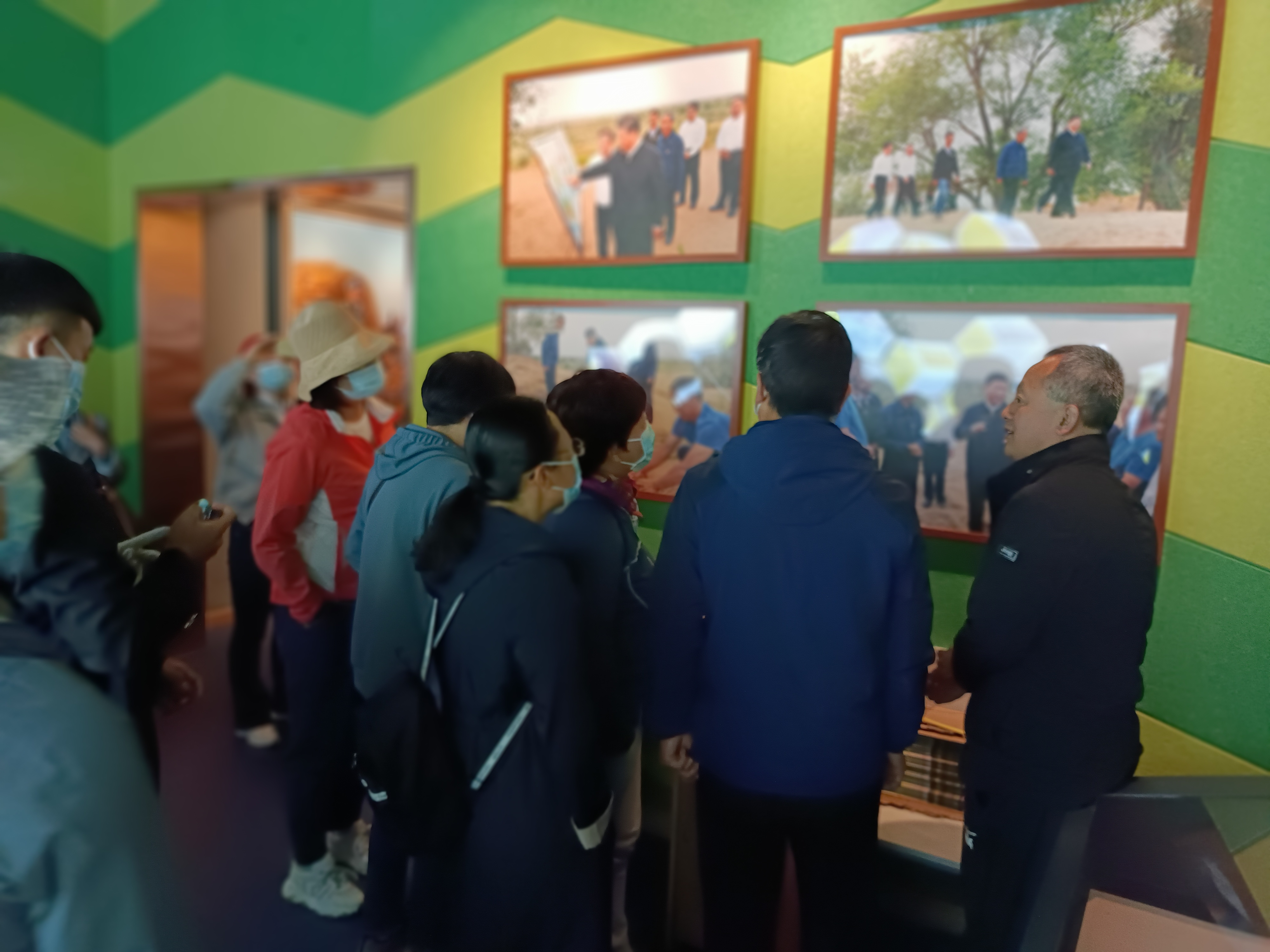 在八步沙六老漢治沙紀念館,大家現(xiàn)場參觀基本陳列、詳細了解了以“六老漢”為代表的古浪八步沙林場職工艱辛的治沙歷程,學習感受時代楷?!傲蠞h”三代人治沙的先進事跡。