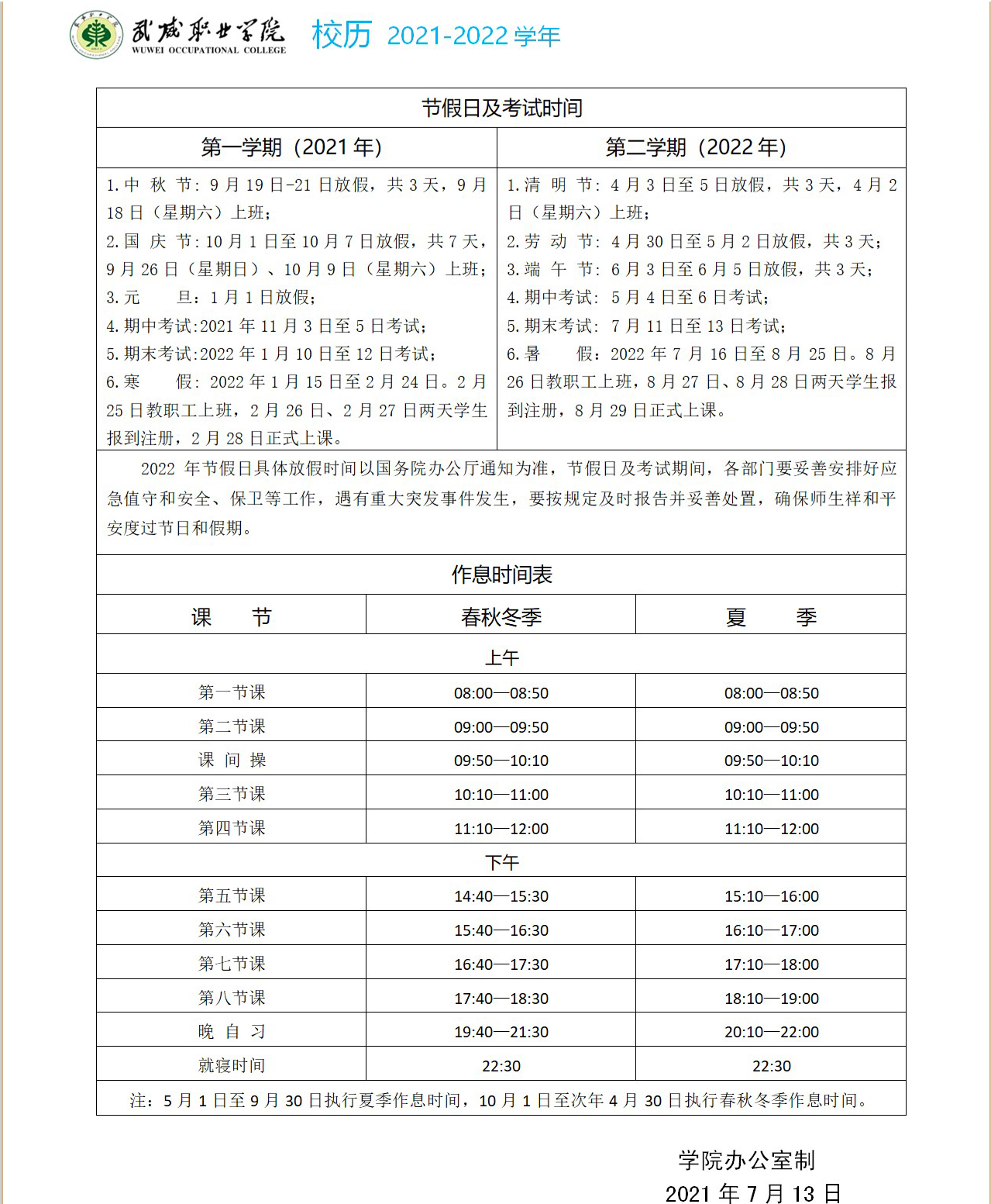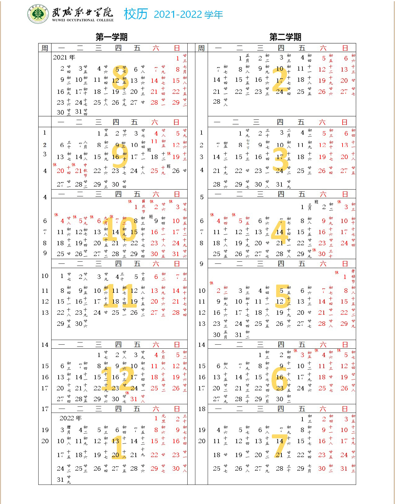 2021-2022學(xué)年校歷