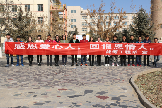 為了成長(zhǎng)為合格的祖國(guó)建設(shè)者,為實(shí)現(xiàn)中國(guó)夢(mèng)。2016年11月24日,武威職業(yè)學(xué)院能源工程系在一號(hào)食堂門(mén)口,舉行了以“感恩愛(ài)心人,回報(bào)恩情人”為主題的活動(dòng),出席本次活動(dòng)的有能源工程系全體學(xué)生會(huì)成員。
