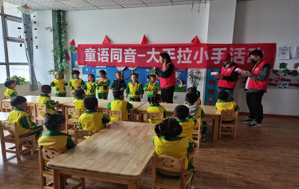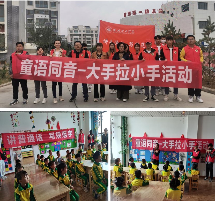 為認(rèn)真貫徹落實《教育部等九部門關(guān)于開展第24屆全國推廣普通話宣傳周活動的通知》(教語用函〔2021〕1號)、《甘肅省語言文字工作委員會等九部門關(guān)于開展第24屆全國推廣普通話宣傳周活動的通知》要求,進一步加大國家通用語言文字推廣力度,9月14日,學(xué)院推普志愿隊師生在古浪綠洲小鎮(zhèn)第一幼兒園開展童語同音-大手拉小手推普活動,推普志愿隊詳細了解小鎮(zhèn)幼兒教師及兒童的普通話普及情況,并與大、中班幼兒進行了有趣的互動活動。