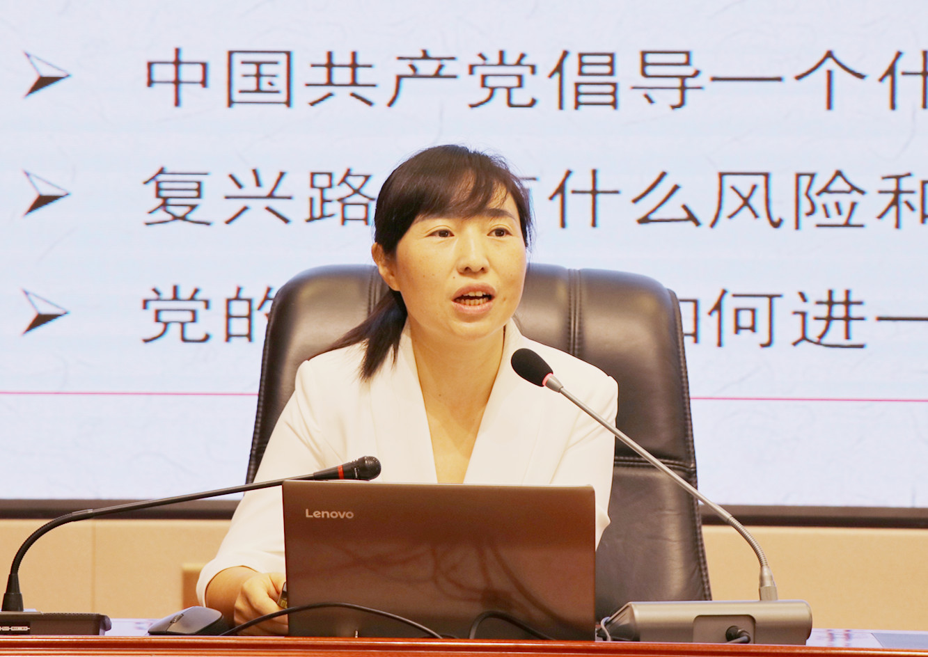 讀書班邀請市委黨史宣傳團成員、甘肅畜牧工程職業(yè)技術(shù)學院副教授羅海燕同志作專題輔導(dǎo)報告。羅海燕同志從深刻把握習近平總書記“七一”重要講話的重大意義、深刻把握習近平總書記“七一”重要講話的豐富內(nèi)涵、學習貫徹落實“七一”講話精神三個方面,對習近平總書記在慶祝中國共產(chǎn)黨成立100周年大會上的重要講話進行了解讀,報告主題鮮明、內(nèi)涵豐富,給參加讀書班的黨員干部和師生作了一場精彩的專題輔導(dǎo)。
