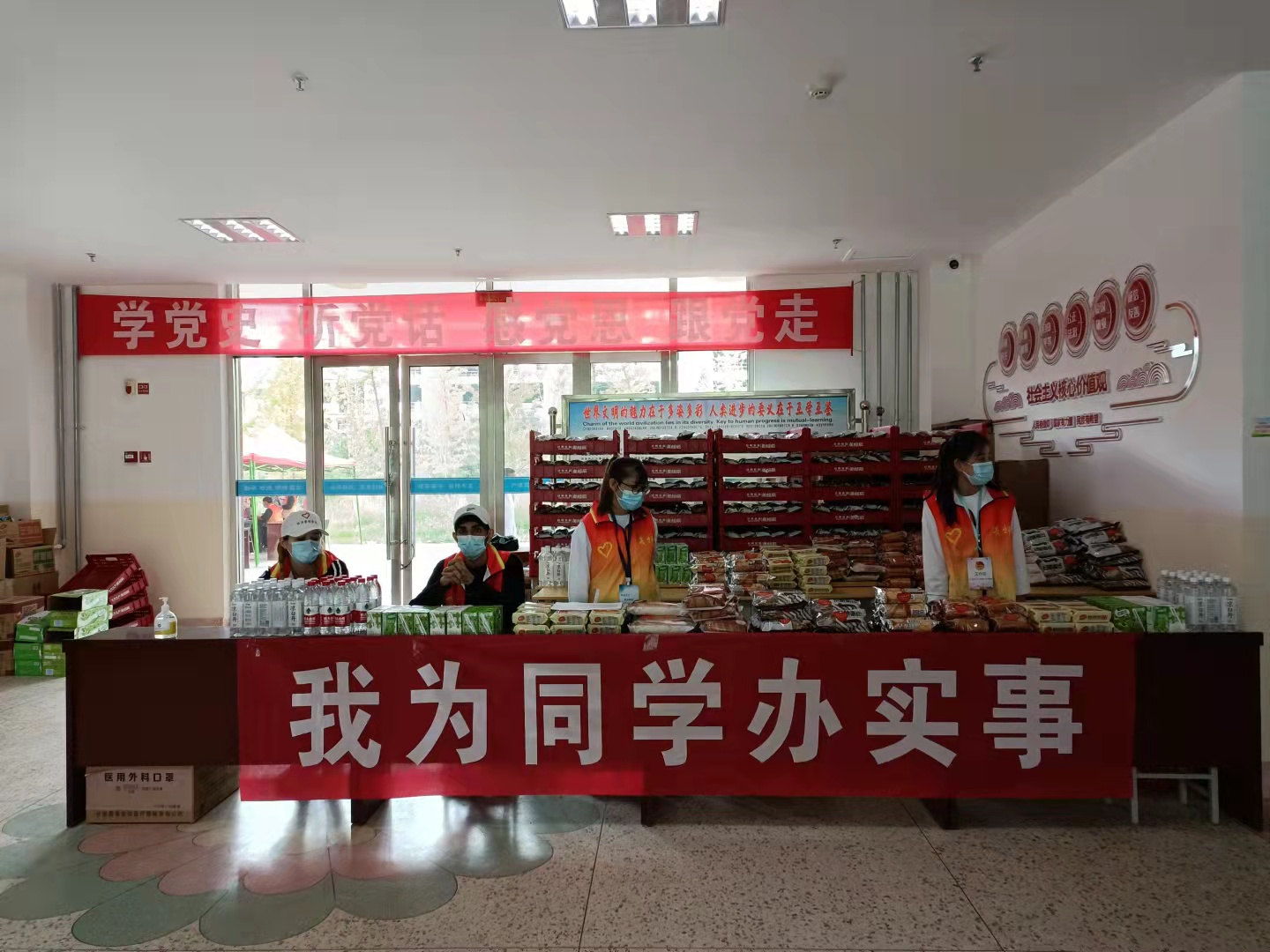 為做好校園閉環(huán)式管理,確保全院師生的健康安全,學(xué)院花費(fèi)20多萬(wàn)元,委托學(xué)院聯(lián)防聯(lián)控共建單位甘肅省武威腫瘤醫(yī)院為入校學(xué)生在經(jīng)緯樓進(jìn)行核酸檢測(cè),并在等待檢測(cè)結(jié)果期間為同學(xué)們發(fā)放牛奶、面包、餅干、純凈水等食物,確保新生安心入校。經(jīng)濟(jì)管理系招募50名師生進(jìn)行服務(wù)保障工作。