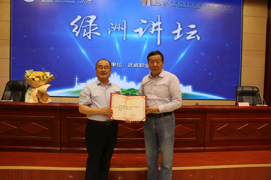 活動(dòng)第二階段,由中科低碳新能源技術(shù)學(xué)院院長(zhǎng)楊存忠為梁志強(qiáng)頒發(fā)了聘請(qǐng)其擔(dān)任武威職業(yè)學(xué)院中科低碳新能源技術(shù)學(xué)院專業(yè)建設(shè)指導(dǎo)委員會(huì)委員和武威職業(yè)學(xué)院兼職教授。梁主任還與在場(chǎng)師生進(jìn)行了愉快的溝通互動(dòng)環(huán)節(jié),從未來就業(yè)工作和專業(yè)建設(shè)方面為師生答疑解惑。