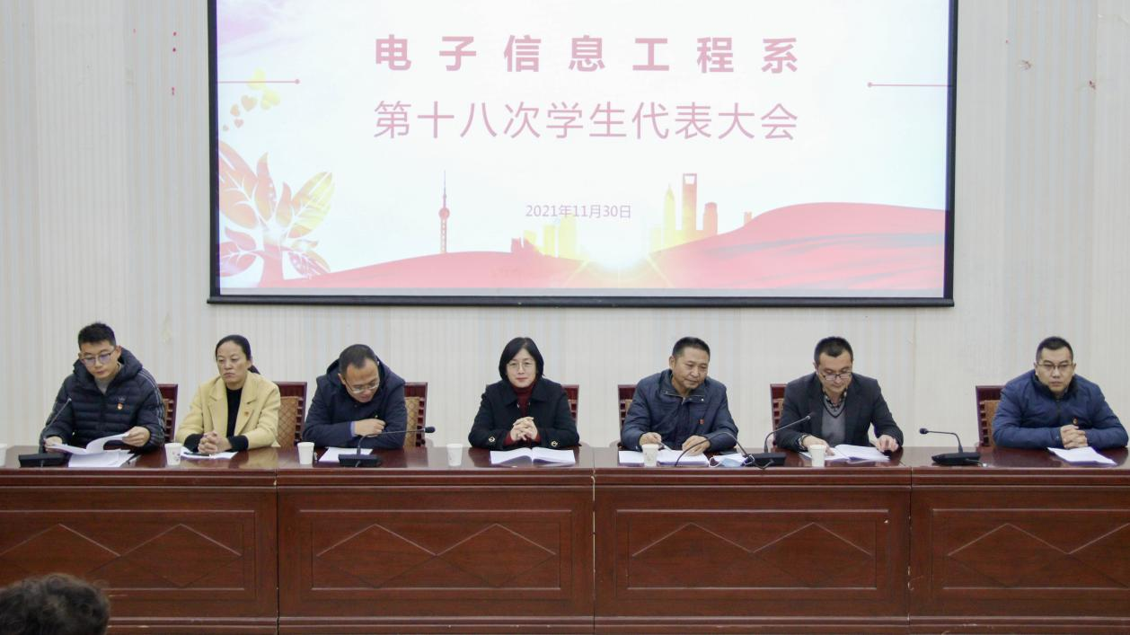 11月30日,電子信息工程系第十八次學生代表大會在明德樓階梯教室隆重召開。110名學生代表參會。