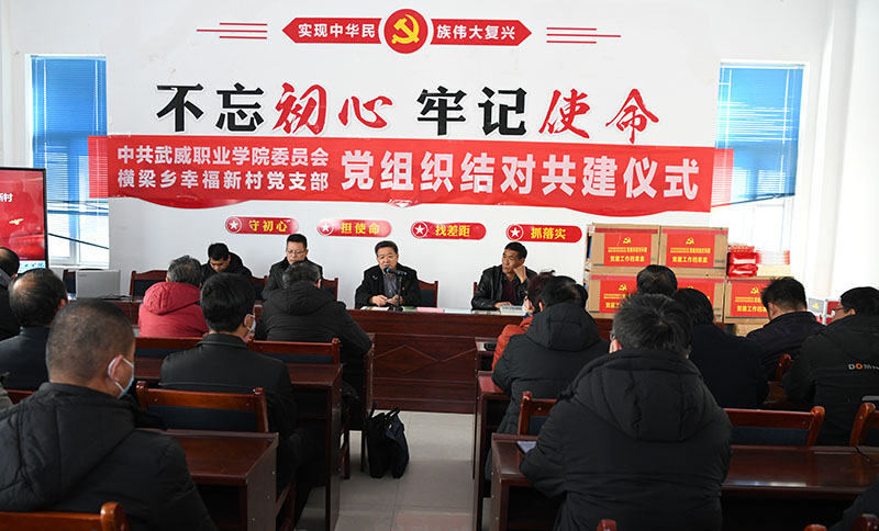 12月11日,學(xué)院黨委與康寧新村、幸福新村黨支部在康寧新村會議室舉行了黨組織結(jié)對共建捐贈活動,與2個村黨支部就結(jié)對共建工作進行了深入交流,捐贈了價值2000元的黨建用品。趙明表示,學(xué)院要發(fā)揮黨組織優(yōu)勢,在康寧新村、幸福新村幫建高質(zhì)量標準化2個黨員活動室,組織學(xué)院黨支部和幫扶村黨支部開展結(jié)對共建活動,探索鄉(xiāng)村振興新模式、新方法、新思路,形成可復(fù)制、可推廣的經(jīng)驗,使“黨建共建”成為鍛煉干部的重要平臺,助力推動古浪縣橫梁鄉(xiāng)康寧新村和幸福新村鄉(xiāng)村振興。趙明強調(diào),要進一步深化黨建引領(lǐng),將黨建工作融入鄉(xiāng)村振興的全過程,不斷完善“黨建+”模式,組織幫扶干部、駐村干部和幫扶村黨員深入開展黨史學(xué)習(xí)教育,扎實開展“我為群眾辦實事”,推進學(xué)院黨建與基層黨建水平共同提升,在鄉(xiāng)村振興中切實發(fā)揮好村黨支部戰(zhàn)斗堡壘作用和黨員先鋒模范作用。2個幫扶村黨支部書記表達了感謝,對共建工作提出建議。