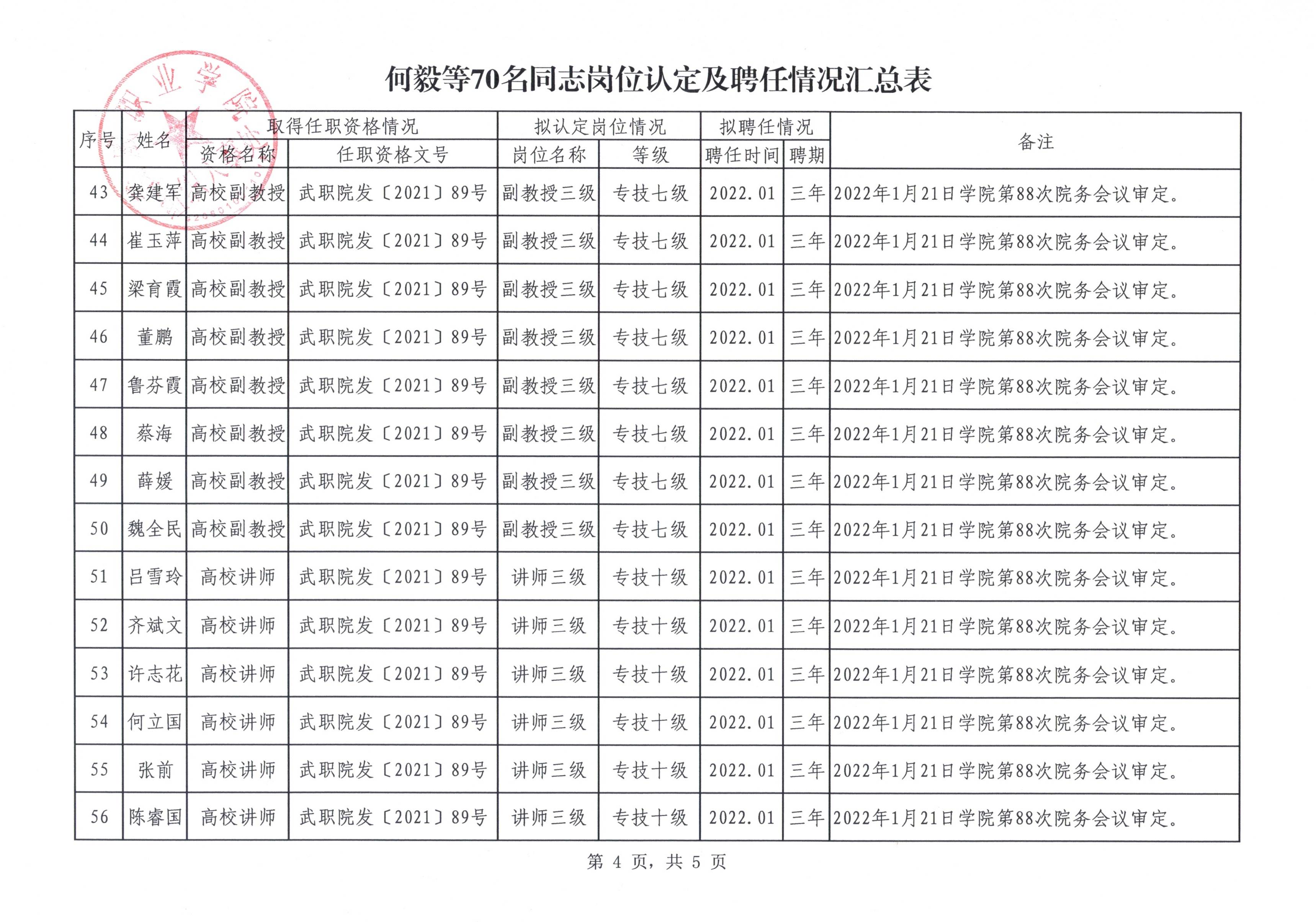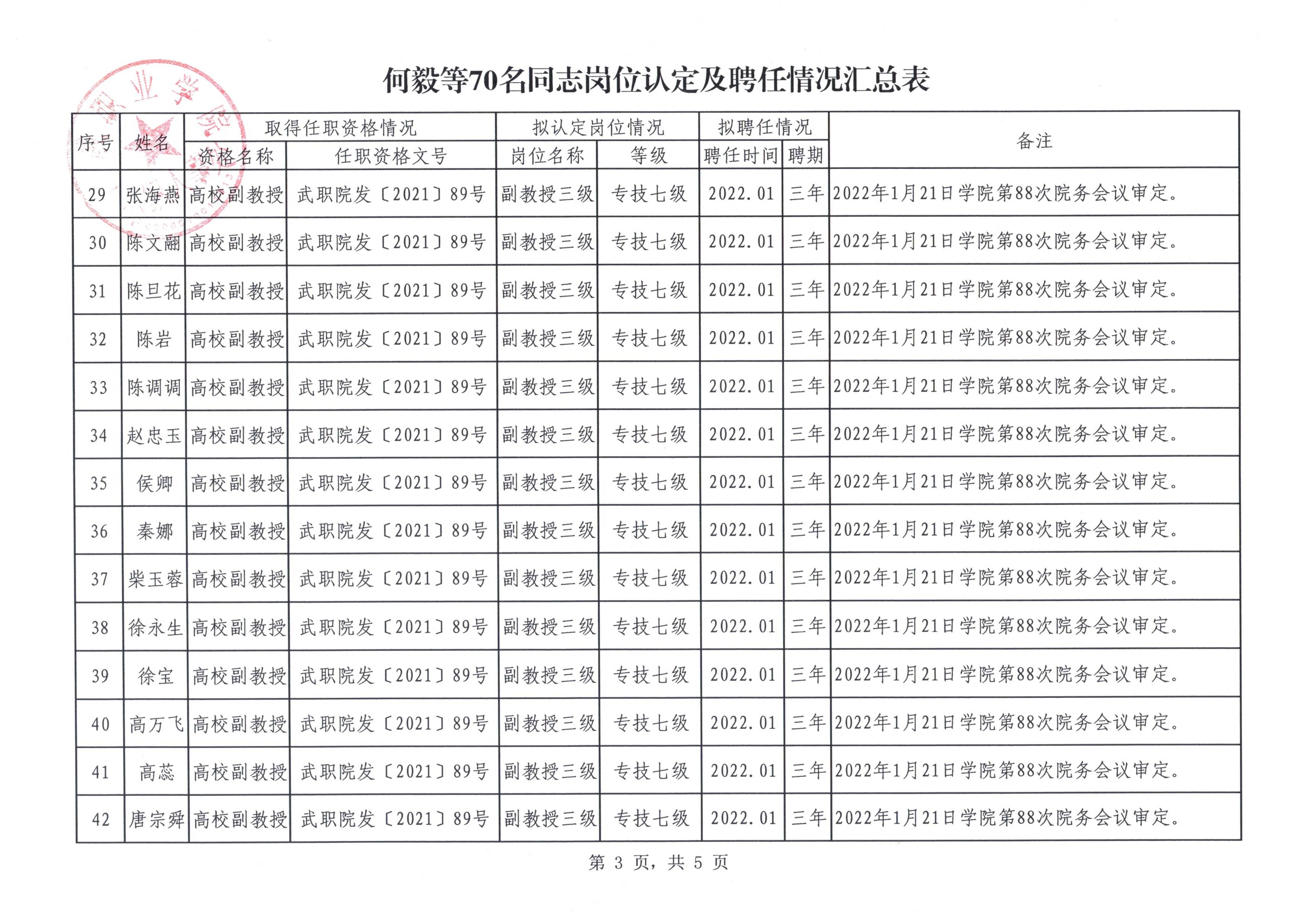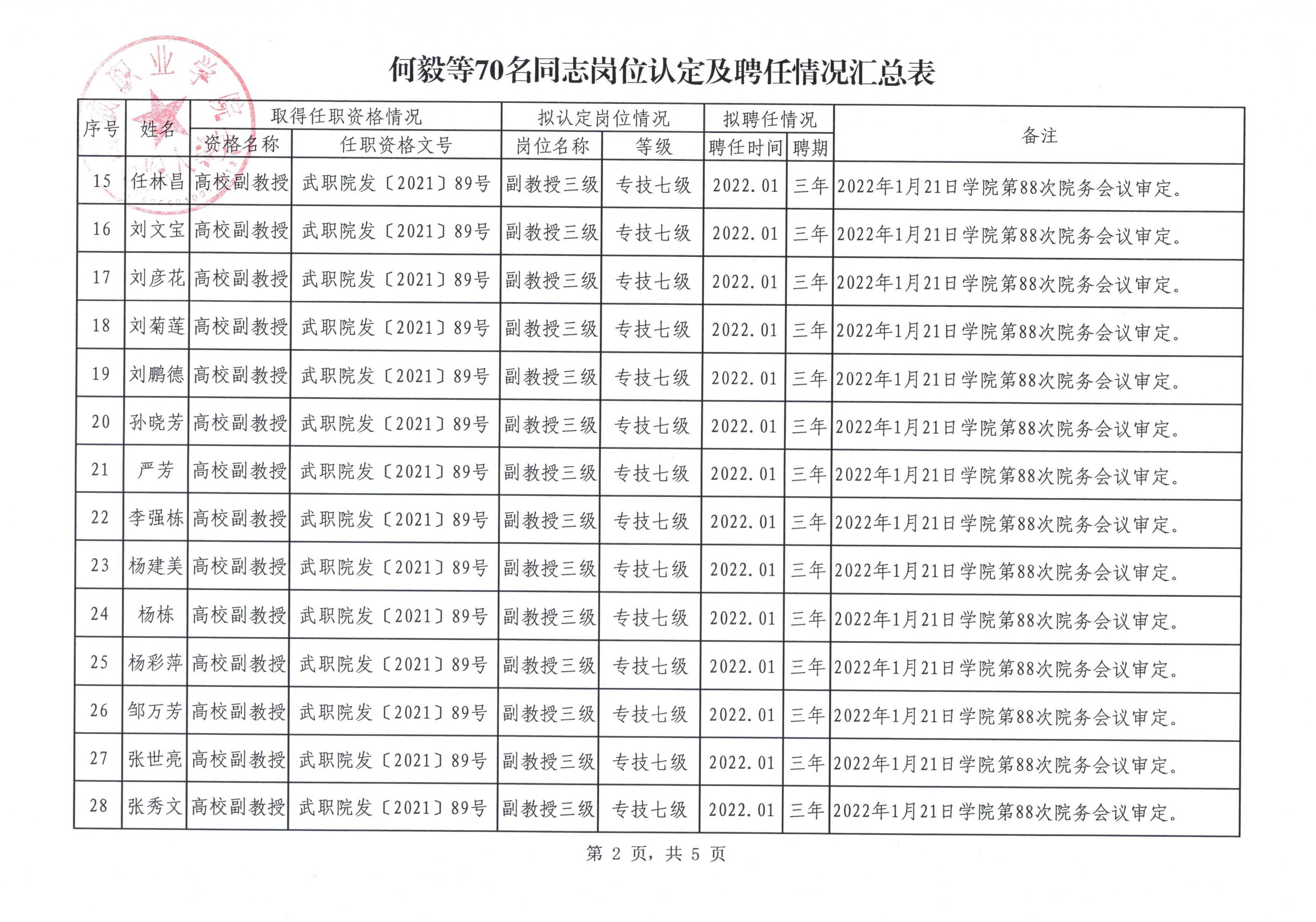 關(guān)于何毅等70名同志崗位認(rèn)定結(jié)果及聘任情況的公示