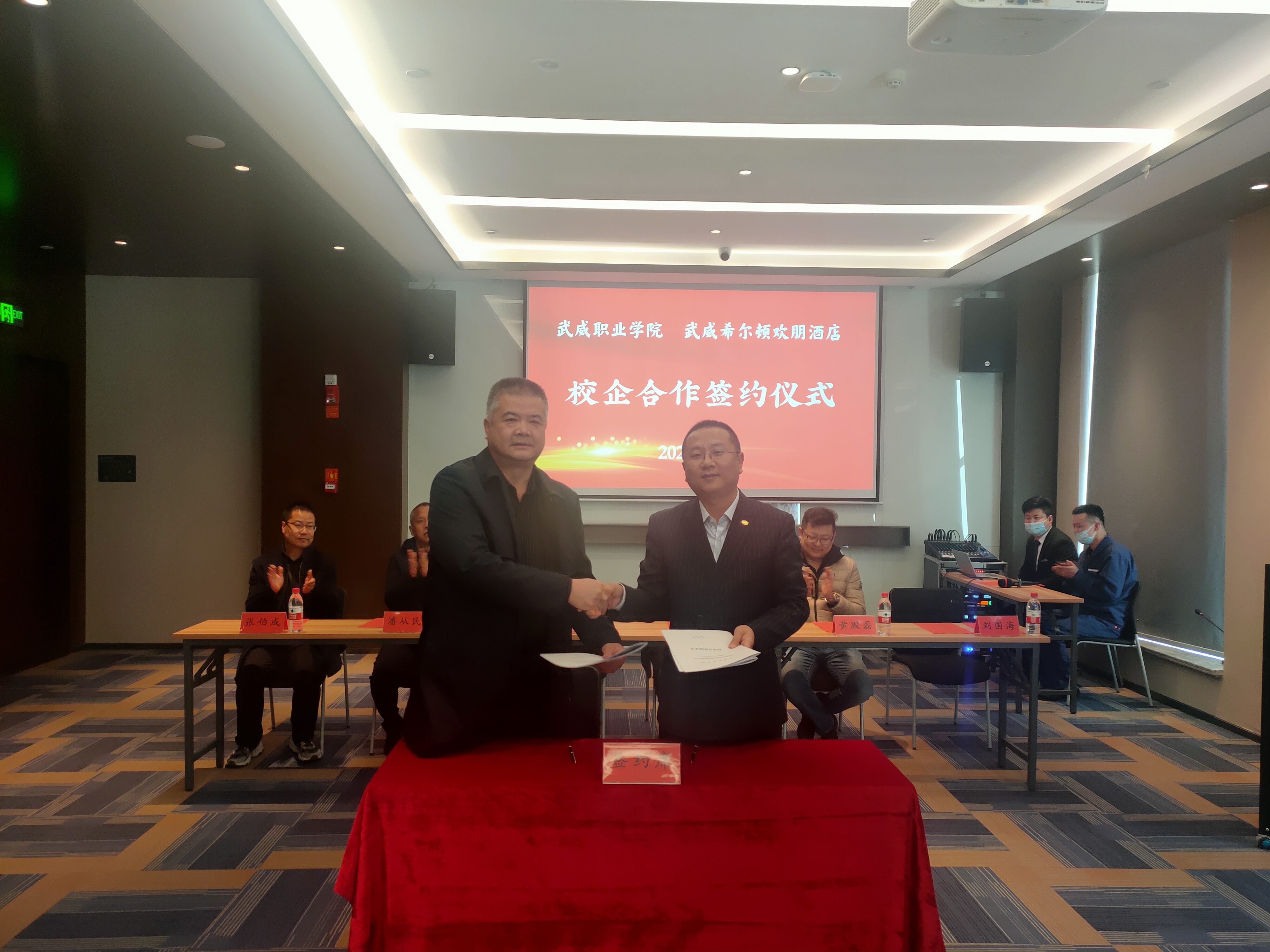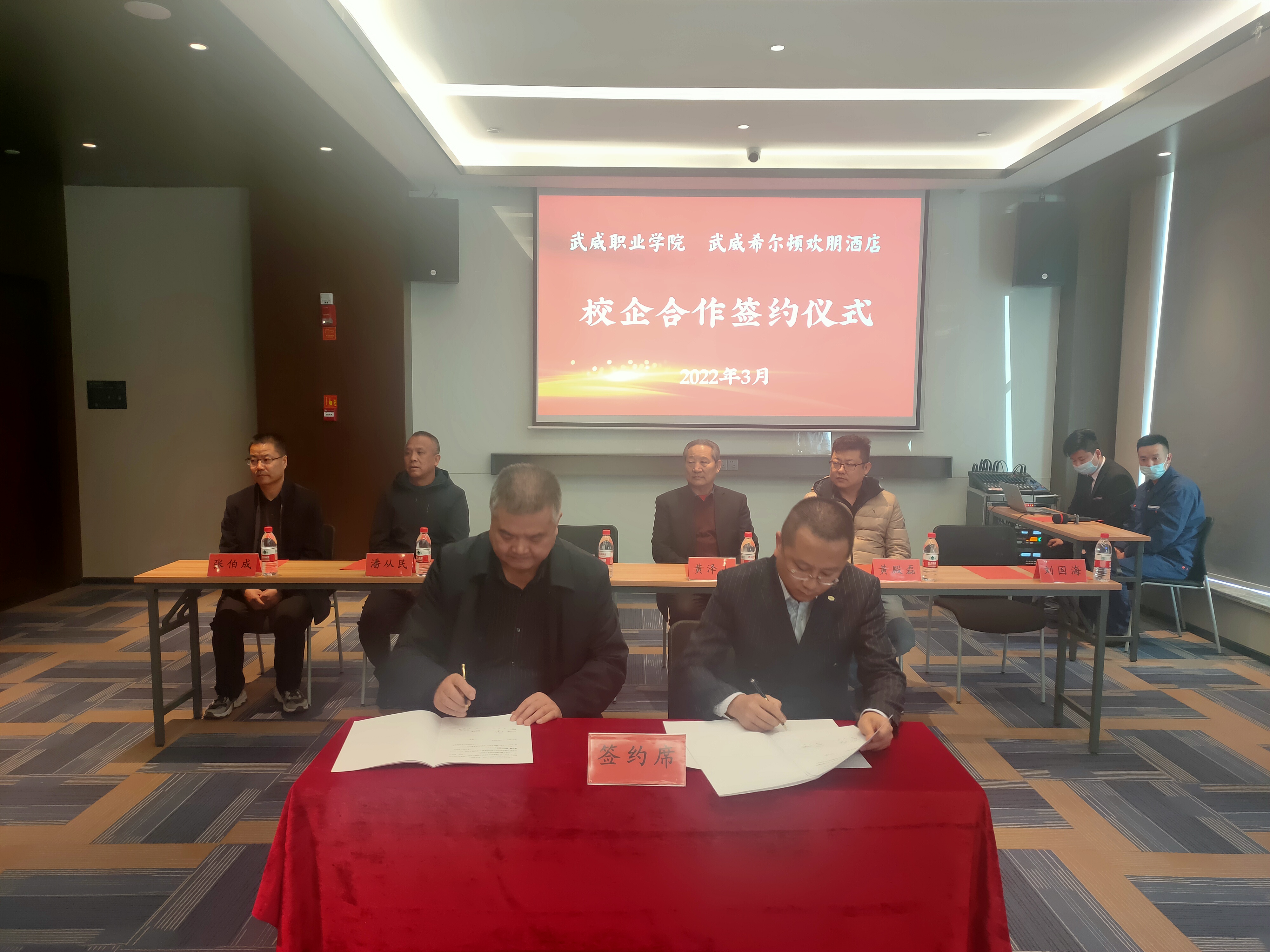 為深入貫徹落實教育部2022屆普通高校畢業(yè)生就業(yè)創(chuàng)業(yè)網(wǎng)絡(luò)視頻會議精神,統(tǒng)一思想,提高認(rèn)識,服務(wù)學(xué)院“雙高計劃”建設(shè),3月2日,學(xué)院與武威希爾頓歡朋酒店舉行校企合作揭牌暨簽約儀式,副校長王守云代表學(xué)院出席簽約儀式。