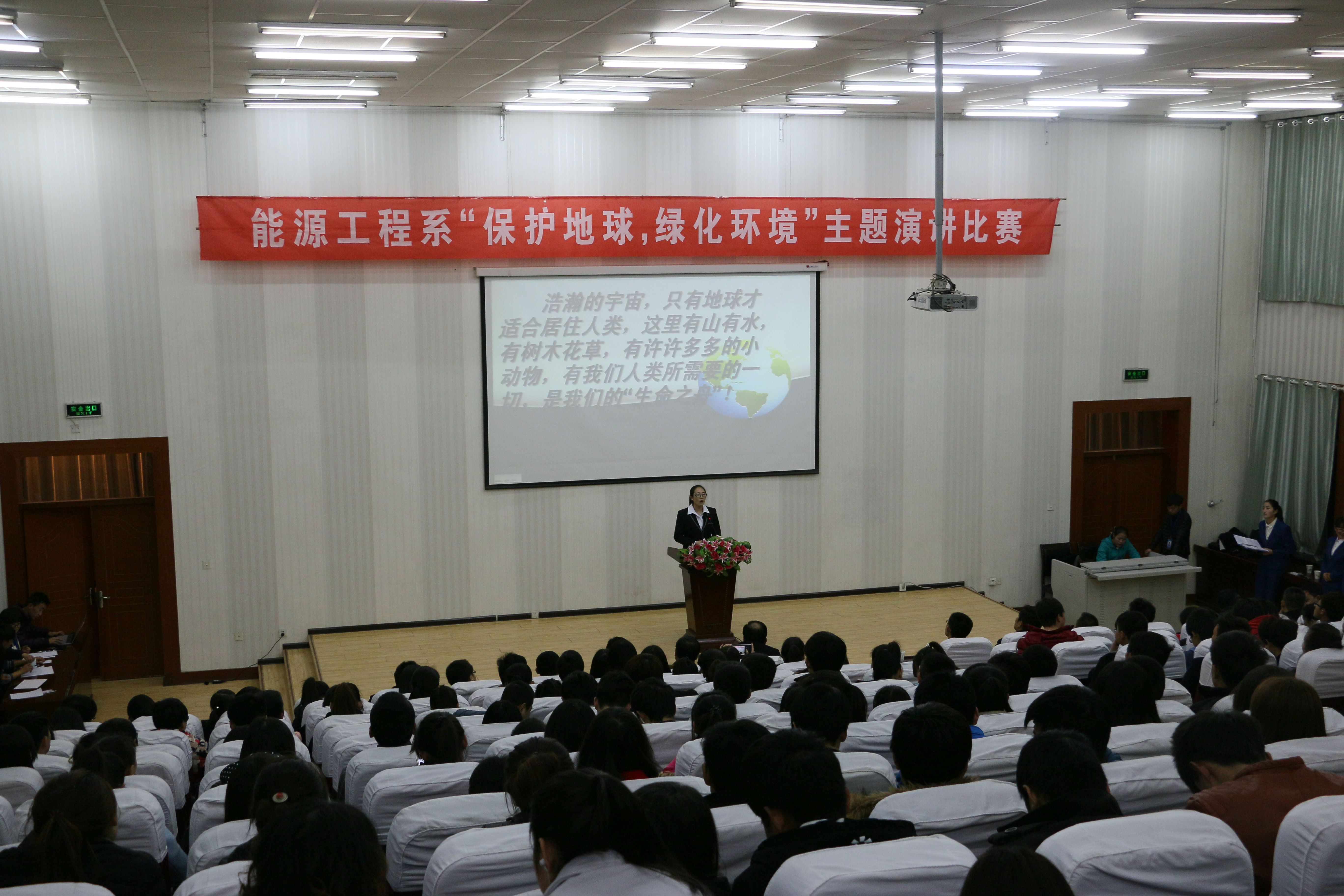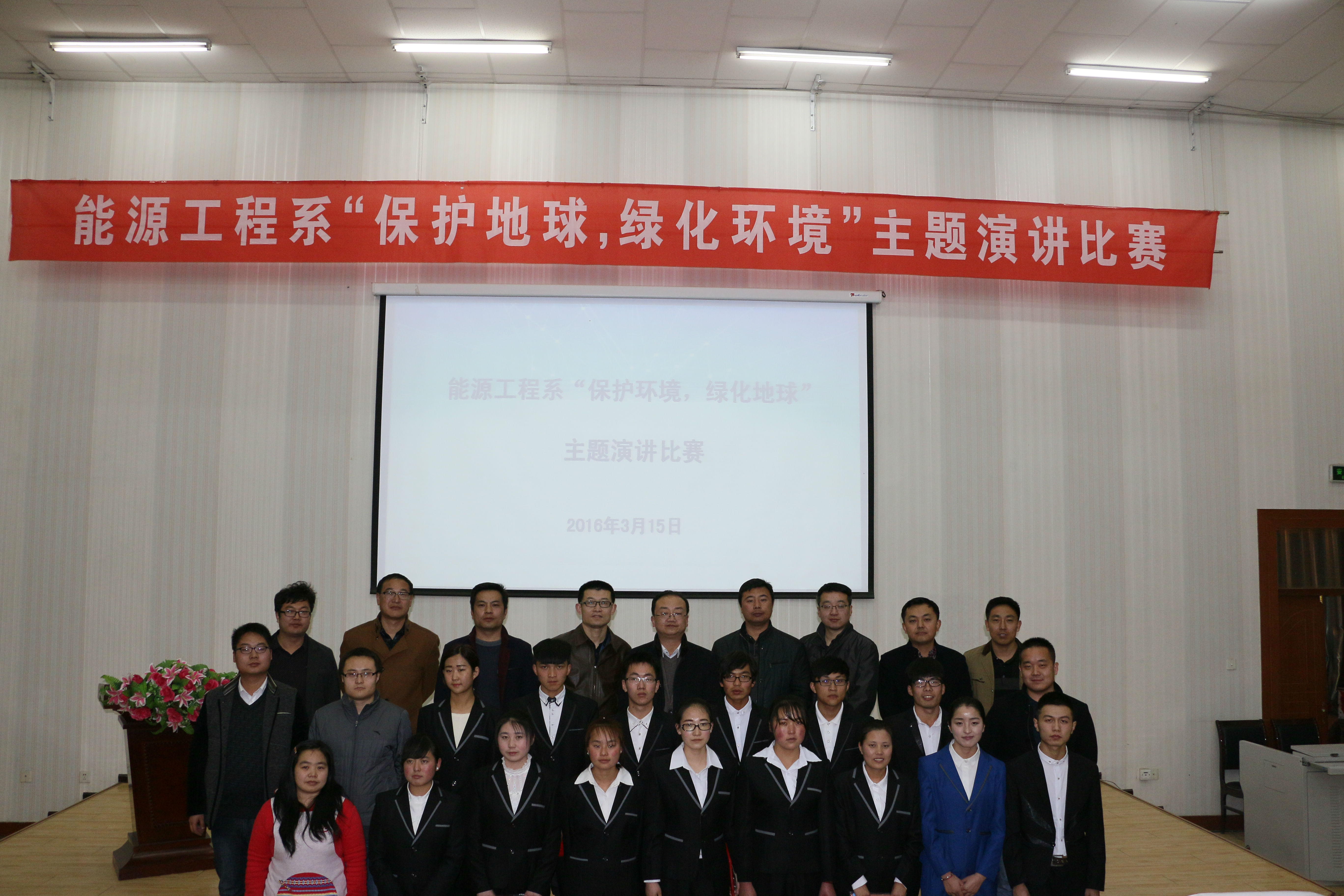 3月15日晚能源工程系在尚德樓正德廳舉辦了“保護(hù)地球,綠化環(huán)境”演講比賽決賽,參加此次活動的有能源工程系全體師生。