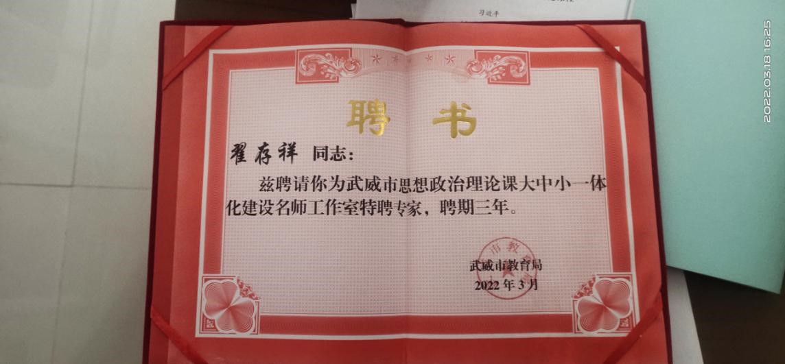會議學習了習近平總書記在學校思想政治理論課教師座談會上的重要講話精神,總結了近年來武威市思政課建設取得的成績,各縣區(qū)交流了經驗做法,安排部署了下一階段工作。同時,舉行了武威市思想政治理論課大中小一體化建設名師工作室授牌和名師工作室特聘專家聘任儀式。學校思政課名師工作室負責人、黨委副書記翟存祥教授被聘為武威市思想政治理論課大中小一體化建設名師工作室特聘專家。