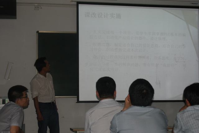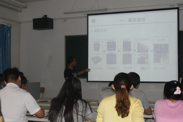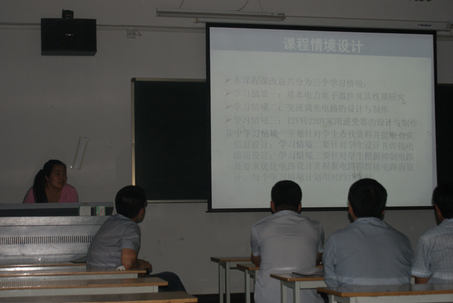 首先,上學(xué)期五位老師對課改完成情況進(jìn)行交流匯報(bào)。顏魯薪、何立國、張國祥、袁亞琳和張娟老師分別就上學(xué)期所帶課程《光伏材料制備與加工》、《光伏產(chǎn)品的生產(chǎn)與質(zhì)檢》、《電氣與PLC控制系統(tǒng)的運(yùn)行與維護(hù)》、《風(fēng)能與利用技術(shù)》及《電力電子技術(shù)》等五門課程從課程規(guī)劃、課程實(shí)施、成果展示、教學(xué)評(píng)價(jià)四個(gè)方面進(jìn)行了詳細(xì)的匯報(bào)。