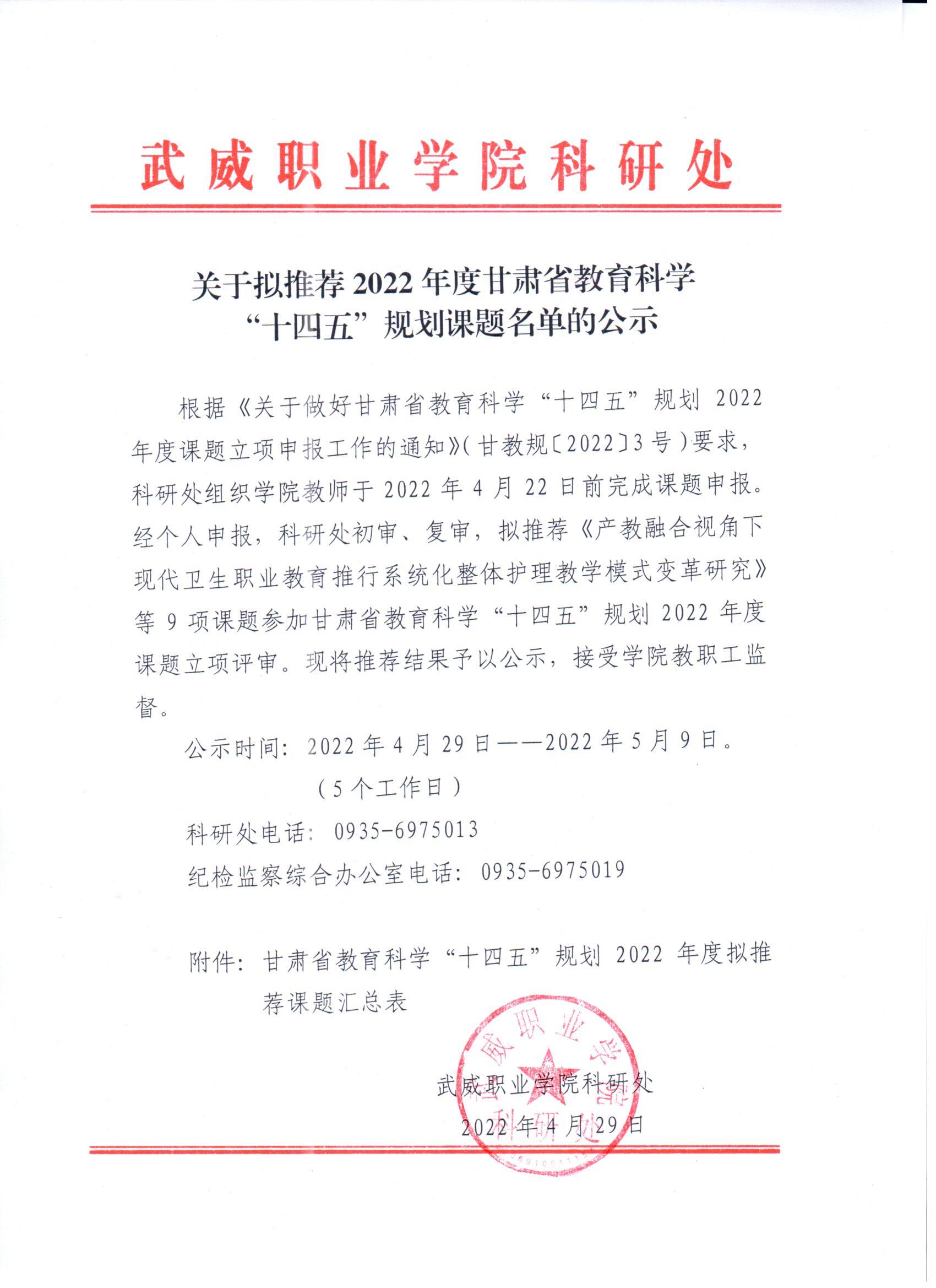 關于擬推薦2022年度甘肅省教育科學“十四五”規(guī)劃課題名單的公示