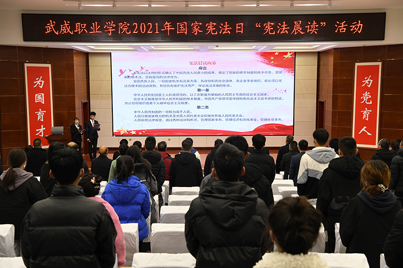 “本憲法以法律的形式確認(rèn)了中國各族人民奮斗的成果,規(guī)定了國家的根本制度和根本任務(wù),是國家的根本大法,具有最高的法律效力……” 在“12·4”國家第八個(gè)憲法日當(dāng)天,學(xué)院舉辦了“憲法晨讀”活動(dòng)。伴隨著朗朗的誦讀聲,在場(chǎng)師生莊嚴(yán)而肅穆地感受著憲法作為國家根本大法的神圣不可侵犯性。
