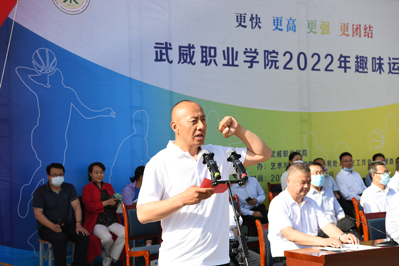 5月24日上午,武威職業(yè)學(xué)院2022年趣味運(yùn)動(dòng)會(huì)在運(yùn)動(dòng)場(chǎng)隆重開幕。開幕式由學(xué)校黨委委員、副校長(zhǎng)王守云主持。學(xué)校領(lǐng)導(dǎo)班子成員,各部門負(fù)責(zé)同志,二級(jí)學(xué)院黨總支書記、院長(zhǎng)參加開幕式。學(xué)校黨委書記、校長(zhǎng)趙明出席并致開幕詞。