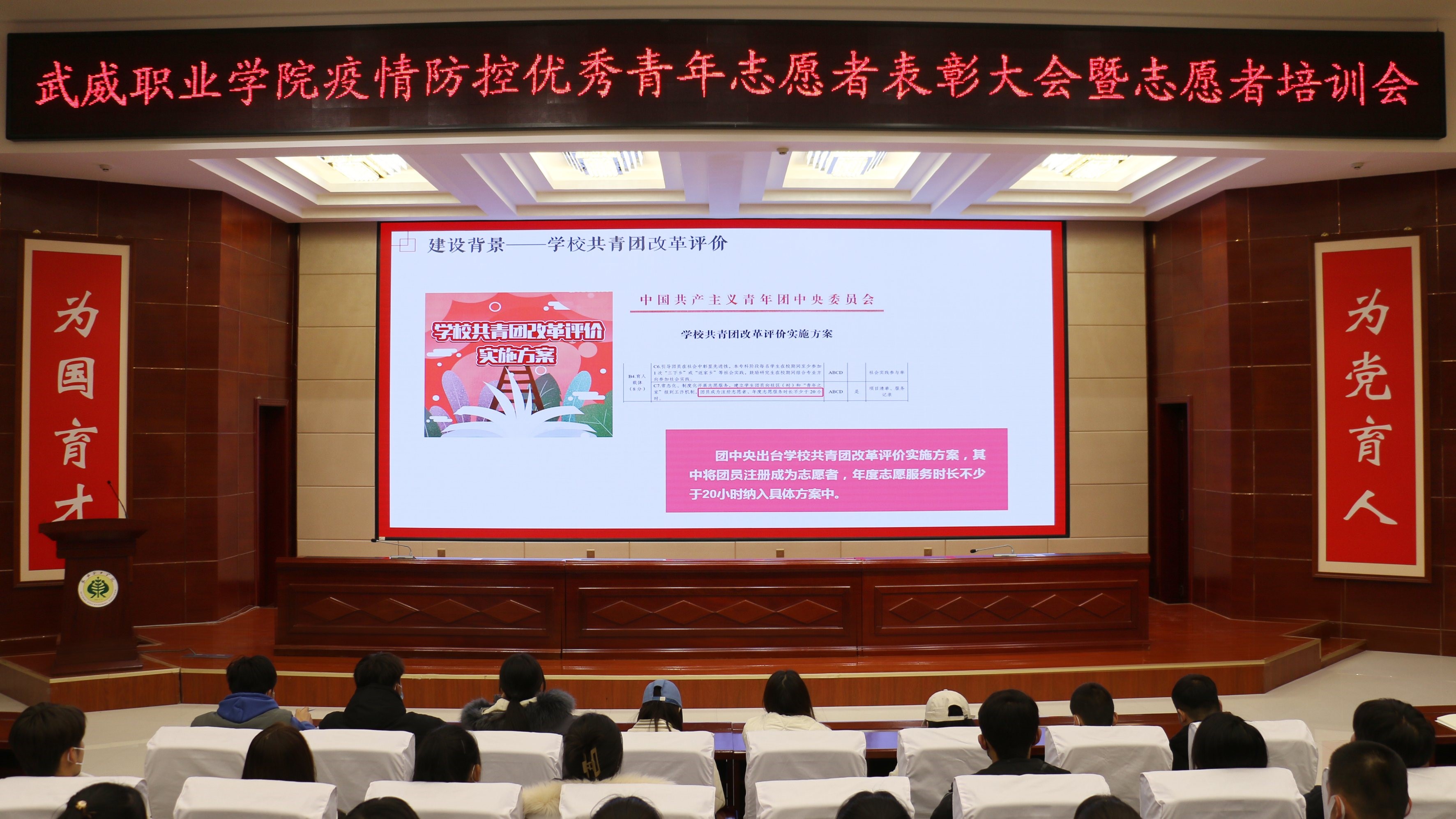 為表彰學院疫情防控期間涌現(xiàn)出的先進典型,弘揚偉大的抗疫精神,進一步增強學院青年志愿者協(xié)會的組織凝聚力和團隊協(xié)作力,院團委于12月22日在學生發(fā)展中心菁英廳召開疫情防控優(yōu)秀青年志愿者表彰大會暨志愿者培訓會,院團委全體教師、志愿者代表參加了大會。