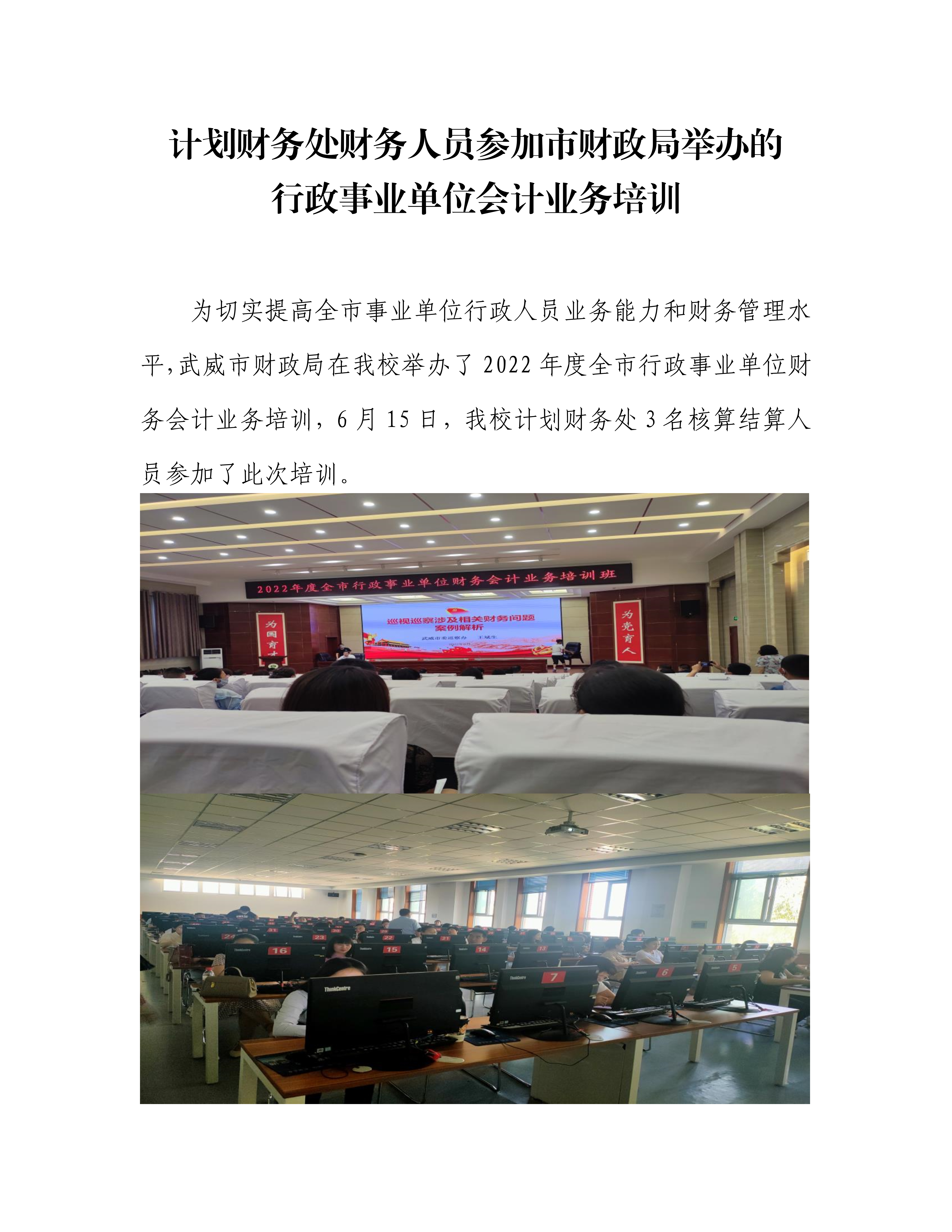 計(jì)劃財(cái)務(wù)處財(cái)務(wù)人員參加市財(cái)政局舉辦的行政事業(yè)單位會(huì)計(jì)業(yè)務(wù)培訓(xùn)