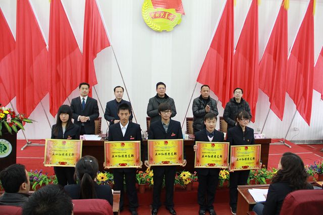 大會上,表彰了2012年學(xué)院五四紅旗團(tuán)總支、五四紅旗團(tuán)支部、優(yōu)秀共青團(tuán)干部、優(yōu)秀學(xué)生團(tuán)干部、優(yōu)秀共青團(tuán)員標(biāo)兵、優(yōu)秀共青團(tuán)員,優(yōu)秀學(xué)生社團(tuán)、優(yōu)秀社團(tuán)干部、社團(tuán)先進(jìn)個人、社團(tuán)優(yōu)秀指導(dǎo)教師,優(yōu)秀青年志愿者、校園文化活動先進(jìn)個人及大學(xué)生暑期“三下鄉(xiāng)”社會實踐活動優(yōu)秀團(tuán)隊、優(yōu)秀隊員、優(yōu)秀指導(dǎo)教師等39個先進(jìn)集體和350名先進(jìn)個人。