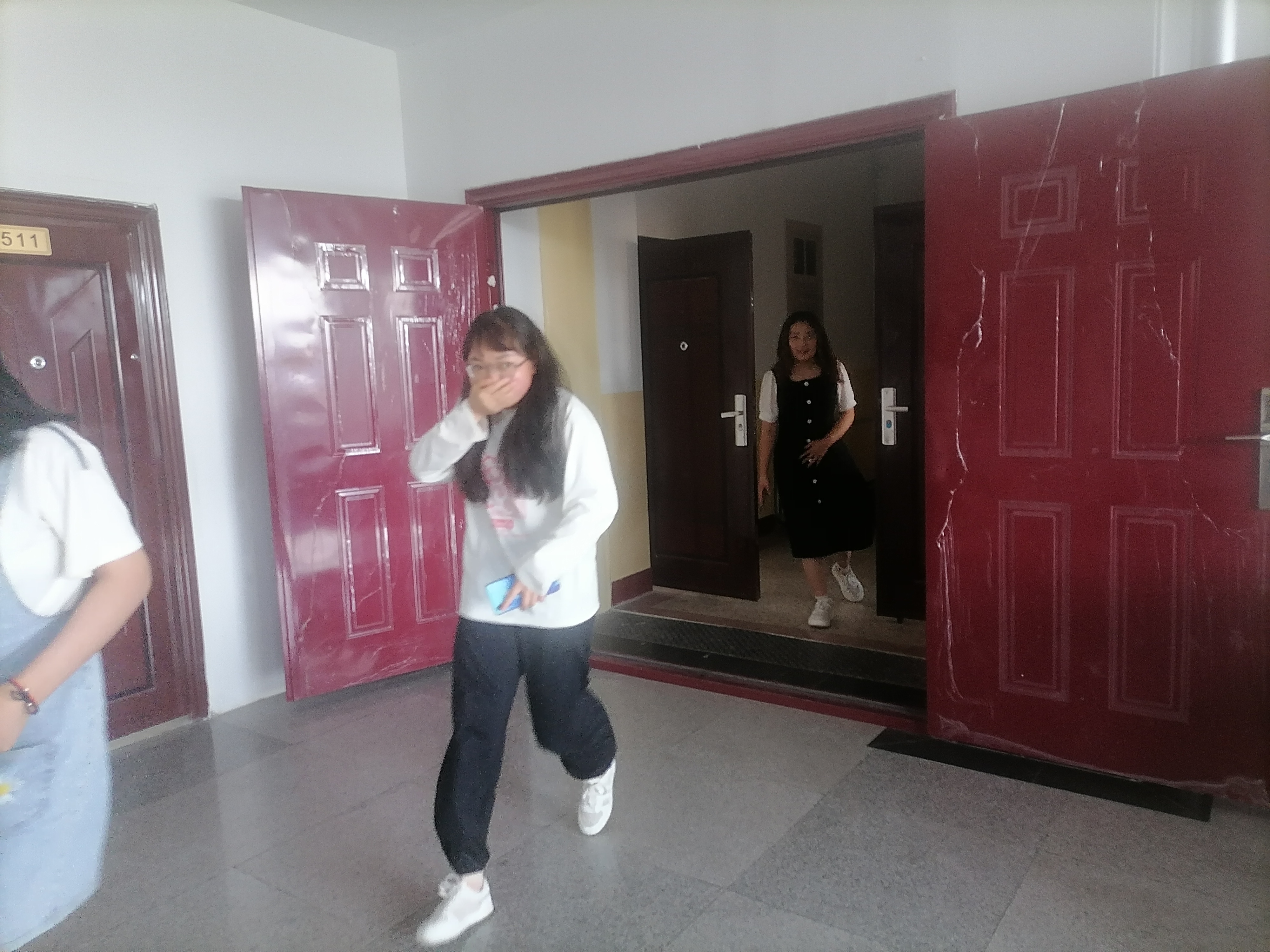 ? ?下午16:50隨著警報的響起,煙霧彈的點燃,上課老師組織學生疏散,各班學生在老師們的指揮下,按照指定路線,貓著腰,用手、袖口捂著嘴鼻迅速有序地進行緊急疏散,全體師生撤離到安全地帶。為保證所有同學安全撤離,學生會成員迅速清點了各班級人數(shù),并像楊老師匯報。