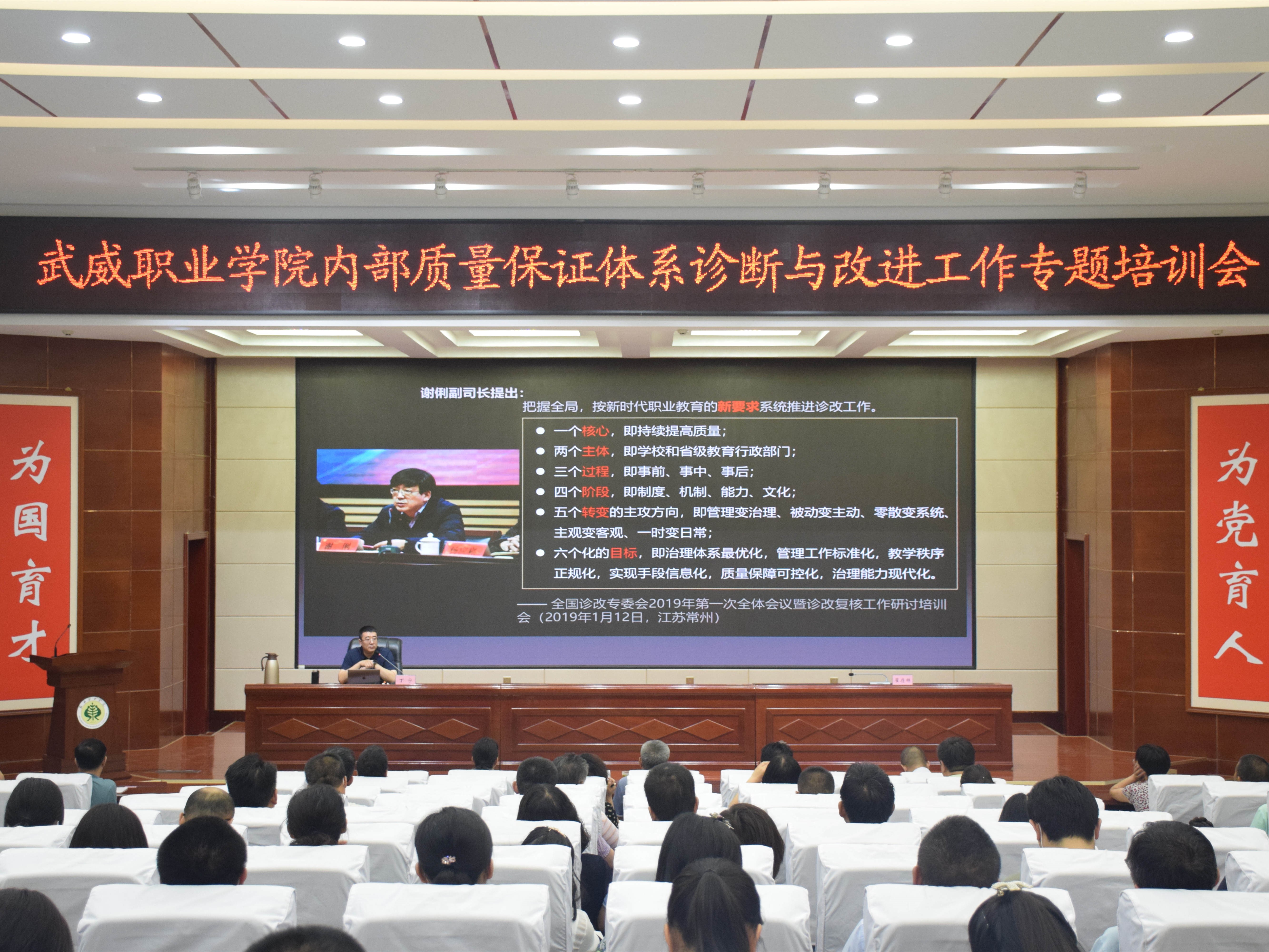 為進一步推動和落實學校內(nèi)部質(zhì)量保證體系診斷與改進工作,深化教育教學改革,樹立現(xiàn)代質(zhì)量文化,7月5日,學校邀請山東勞動職業(yè)技術(shù)學院質(zhì)量考核辦公室主任丁寧教授做了題為《內(nèi)部質(zhì)量保證體系建設(shè)的價值定位、內(nèi)在邏輯和實踐路徑》的專題講座。學校領(lǐng)導(dǎo)班子成員、中層干部及各部門、二級學院教師代表共200人參加,學校黨委副書記翟存祥主持。